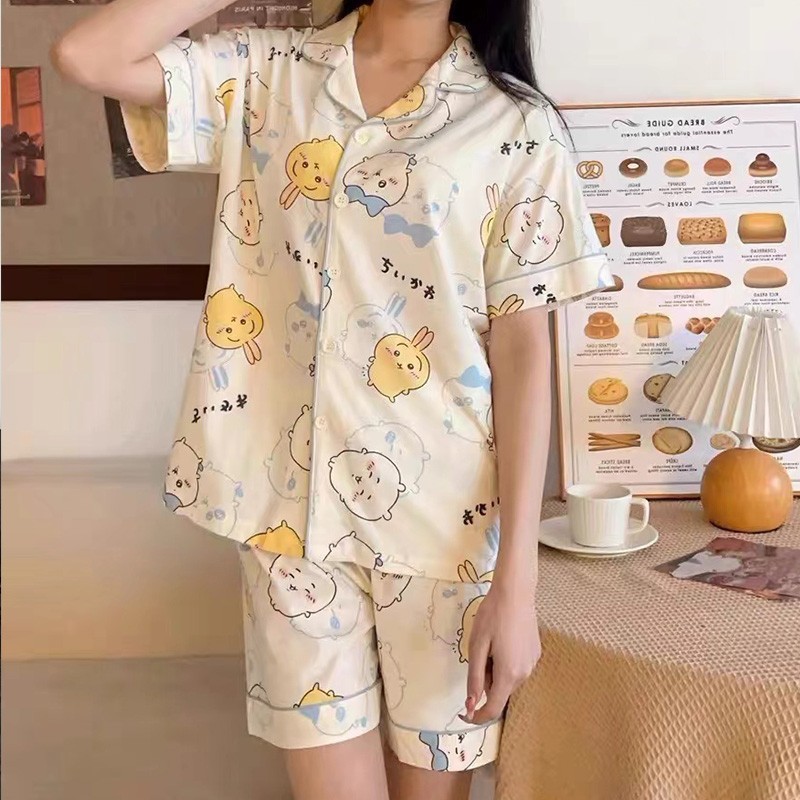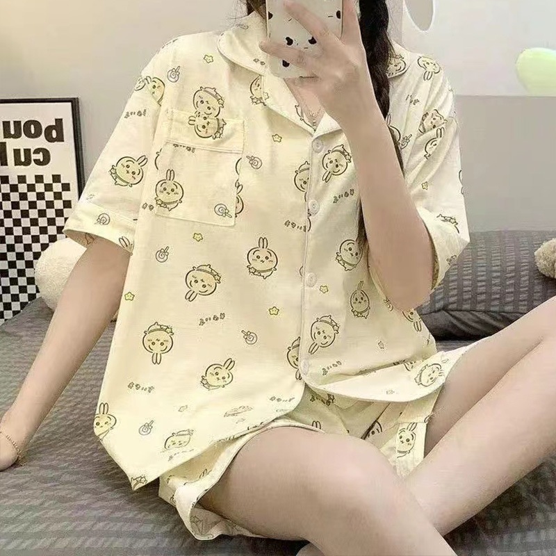 Korean Cute Cotton Pajama Set for Women Printed Sleepwear Terno with Pocket