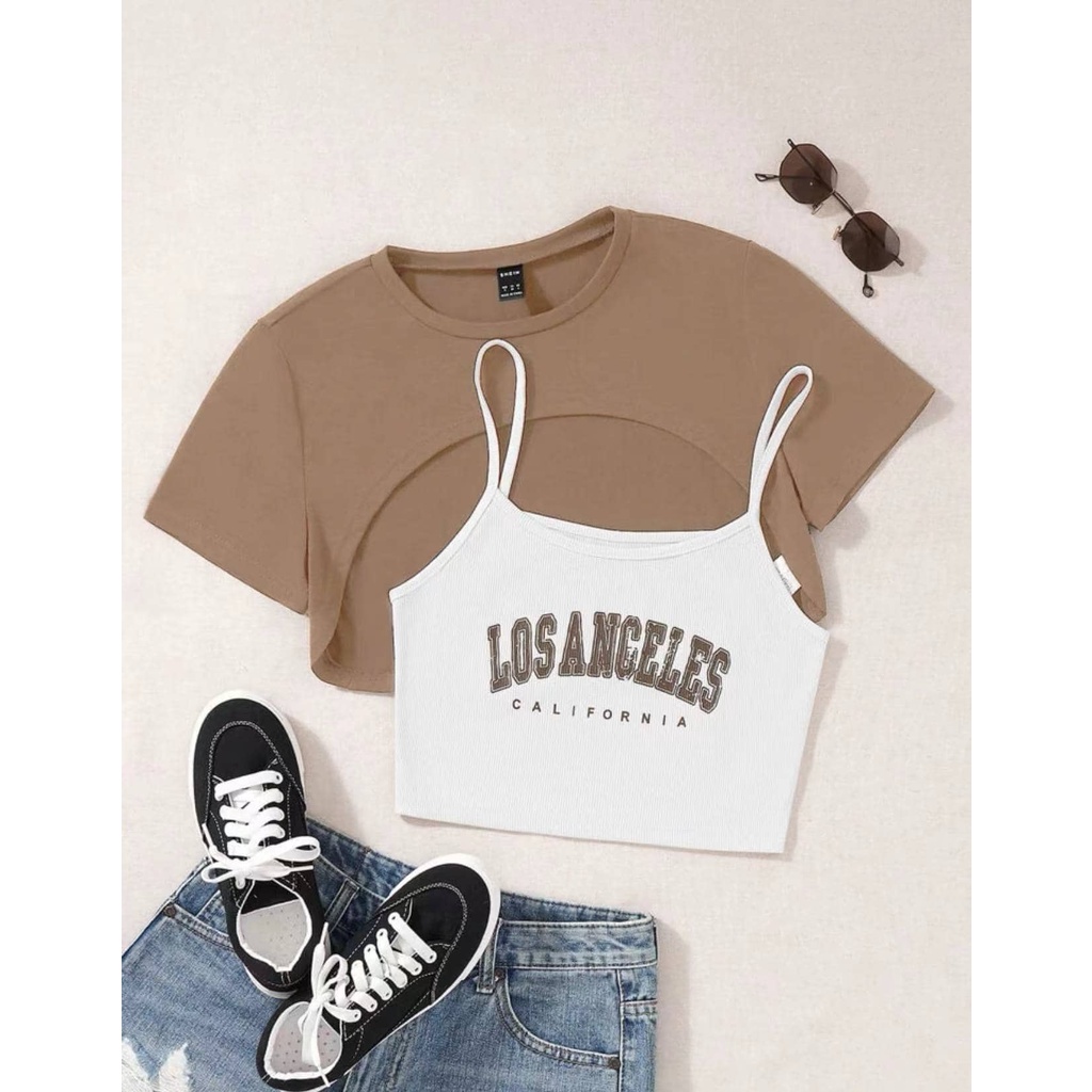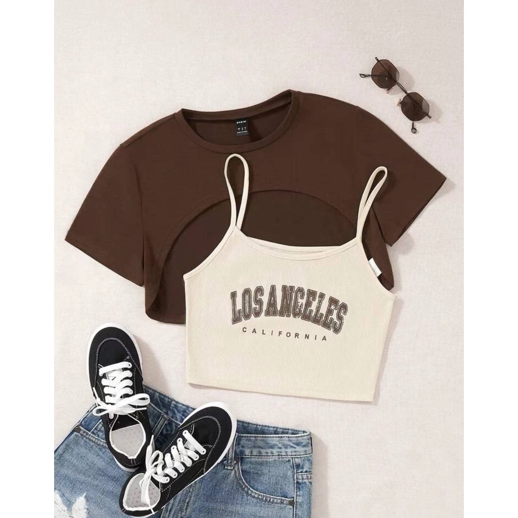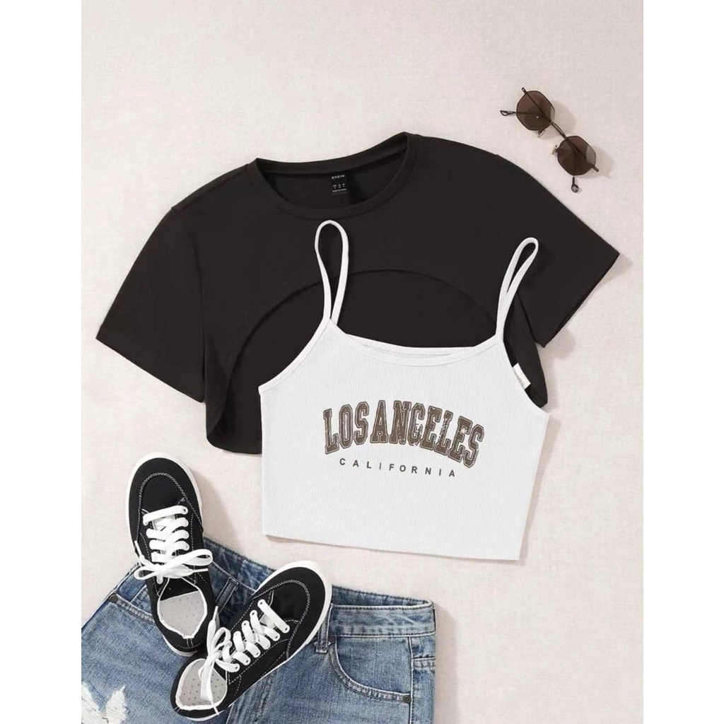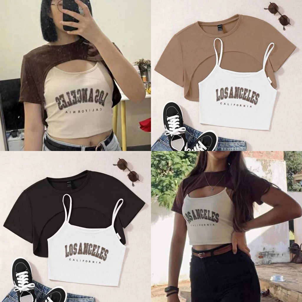 Korean Fashion 2 in 1 Crop top tee free size Slim Fit tops for women