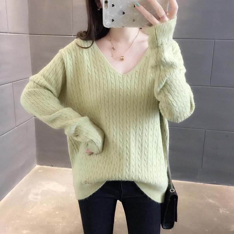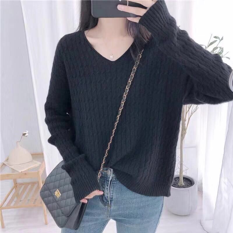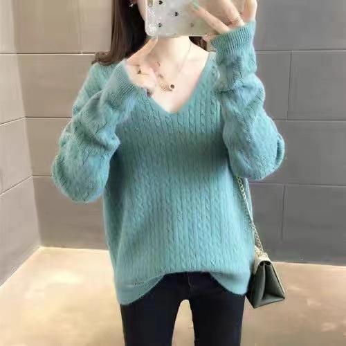 Korean Fashion Furry Smooth Sweaters Top Plus size V-Neck Long Sleeve Knit Blouse Top Winter Wear