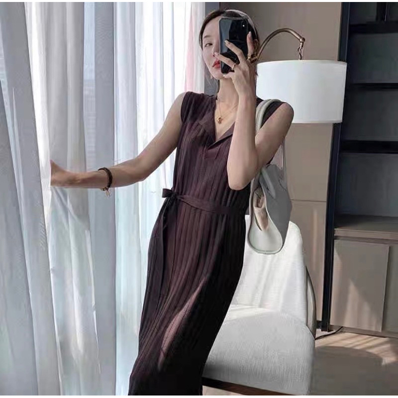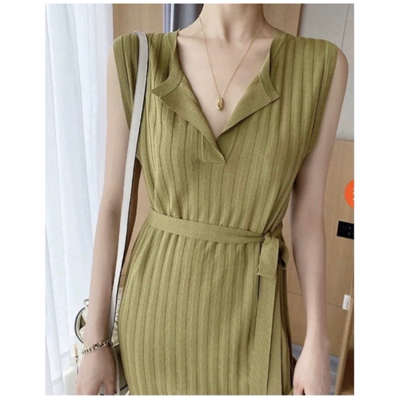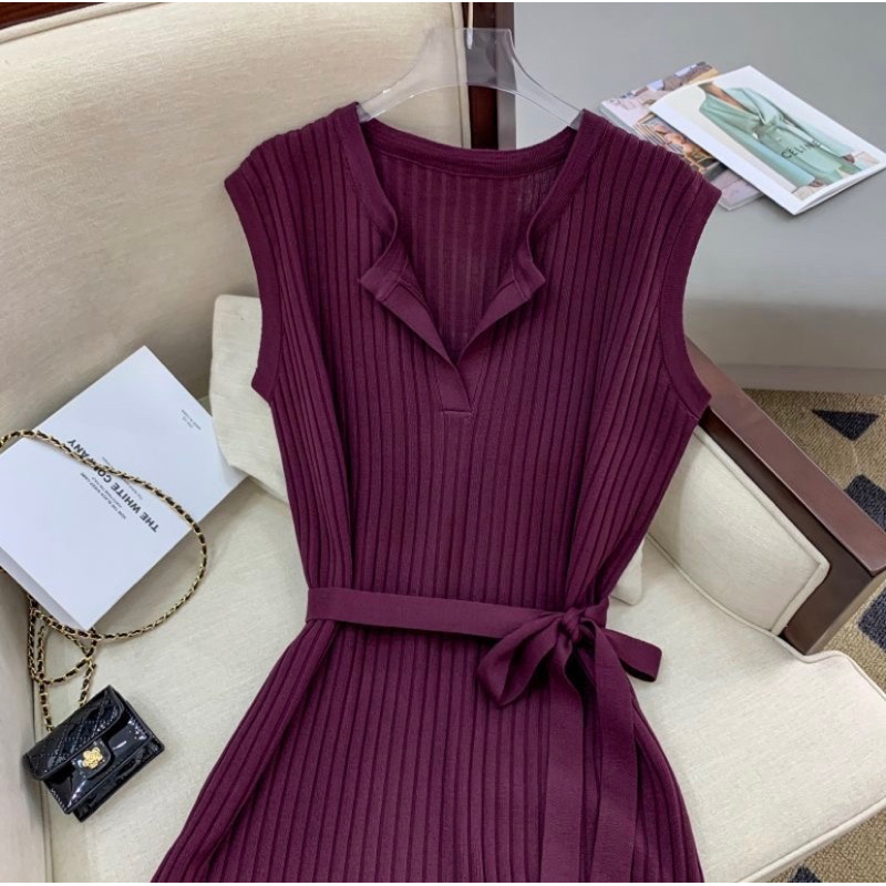 Korean Knitted Oversized Plain Midi Dress w/belt #1108