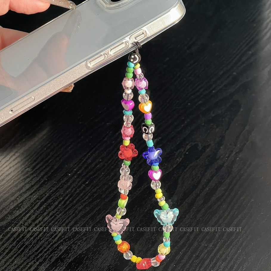 Korean Love Heart 3D Bowknot Phone Chain Acrylic Beaded Phone Pendant Jewelry Phone Bracelet Chain