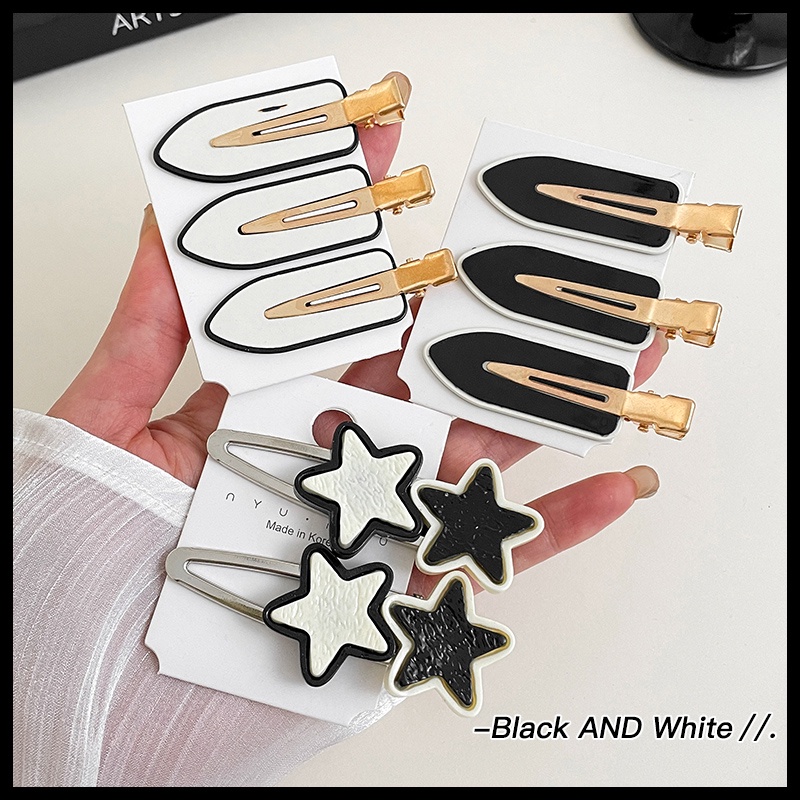 Korean New Style Girl's Checkerboard Black and White Hair Clip Forehead Bangs Duckbill Clips Fashion Hair Pin Hair Accessories Set for Women
