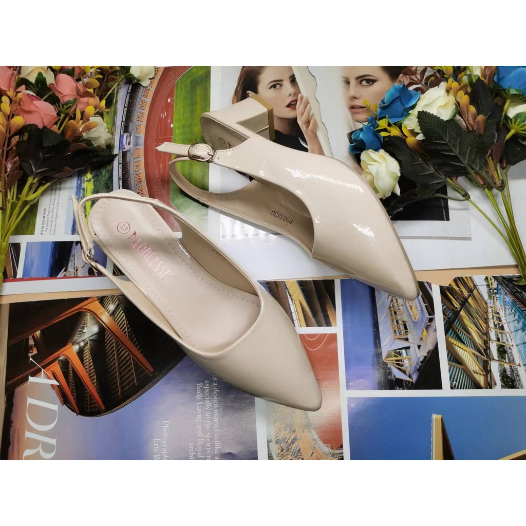 Korean Point Closed Toe Block Heel Sandals for Women2024