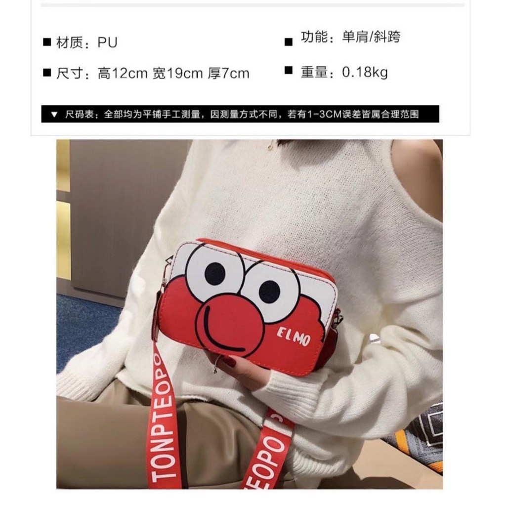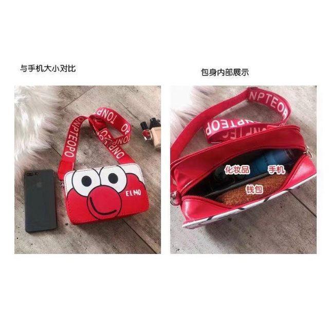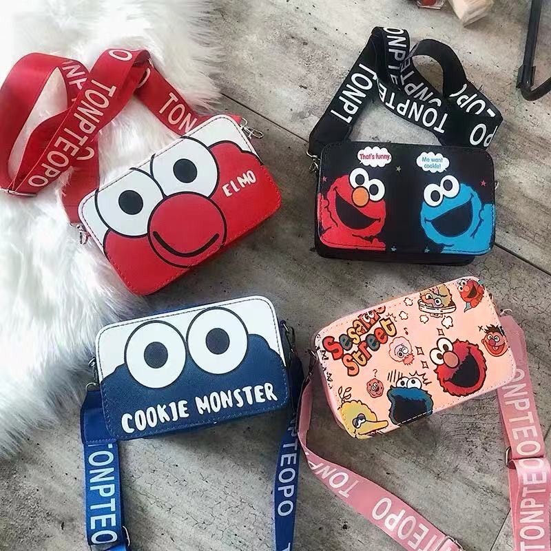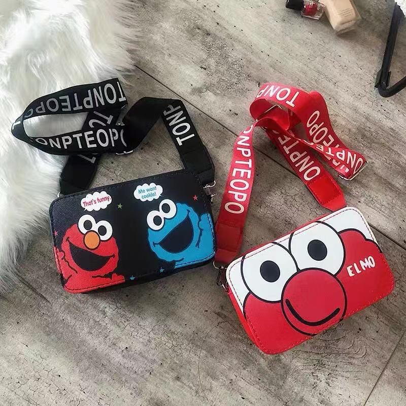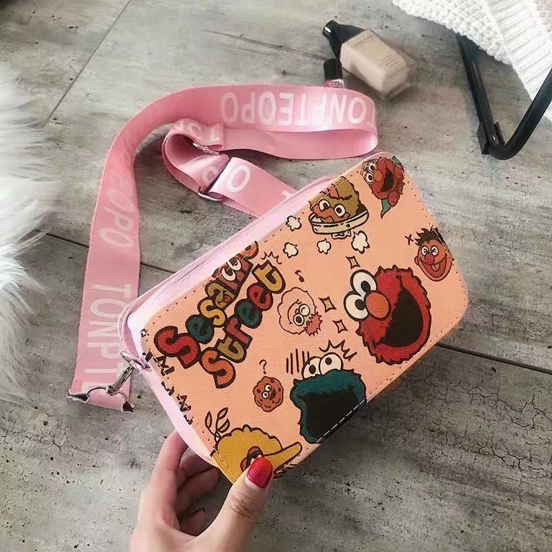Korean Sesame Street Cute Cartoon Snapshot Wide Sling Design Shoulder Sling Bag