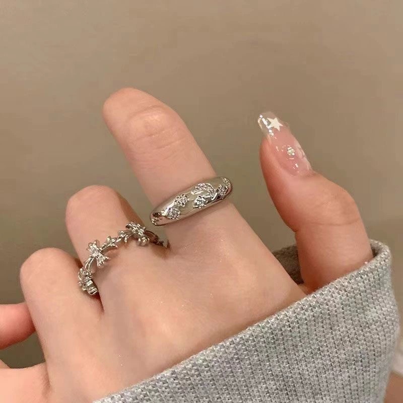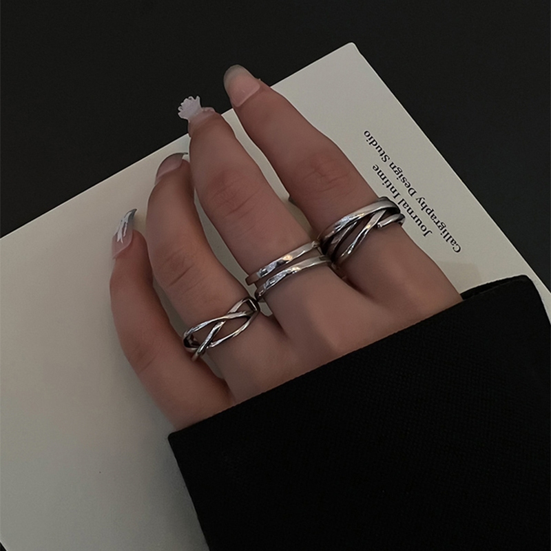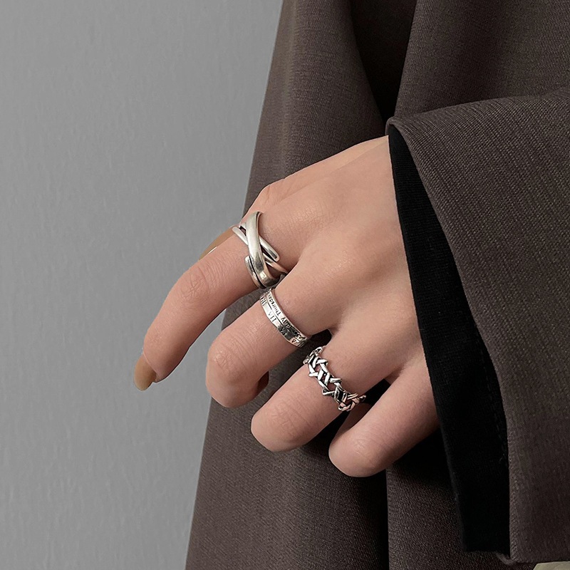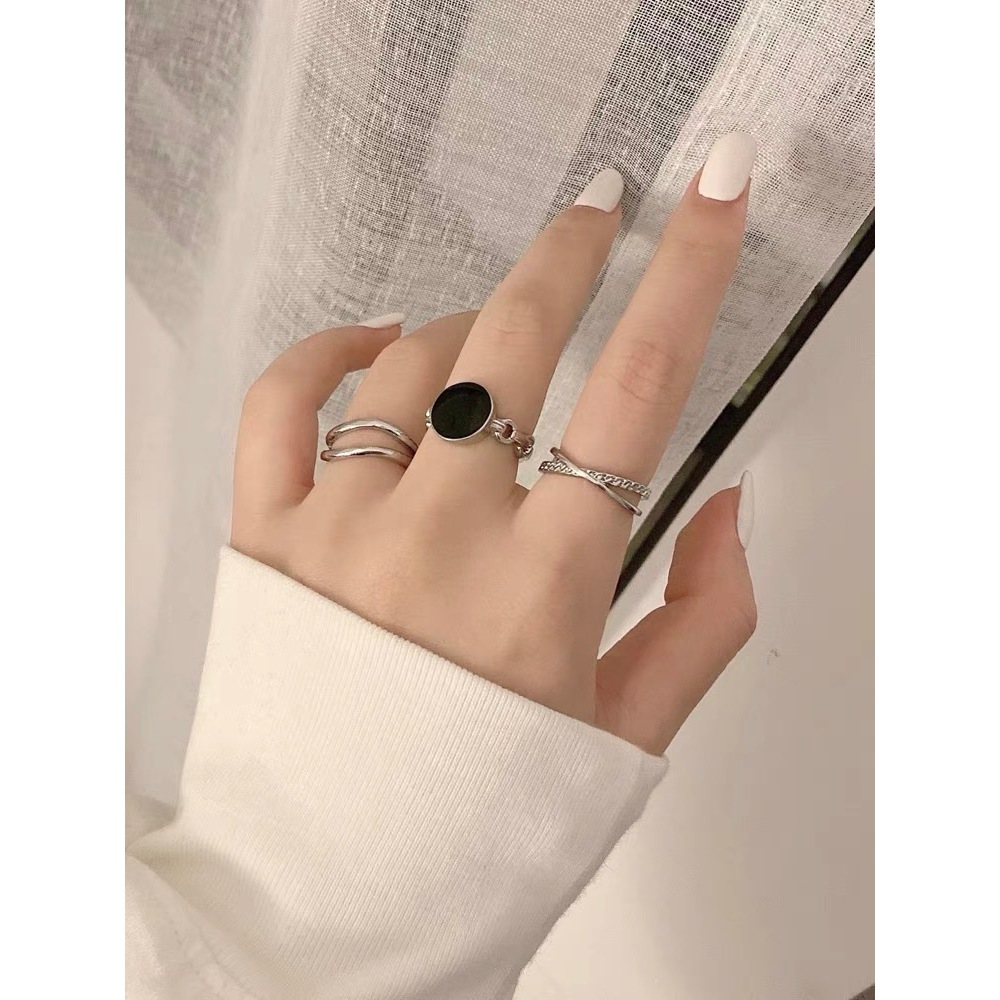 Korean Silver Ring Set with Punk Personalized Opening Adjustable Women Ring