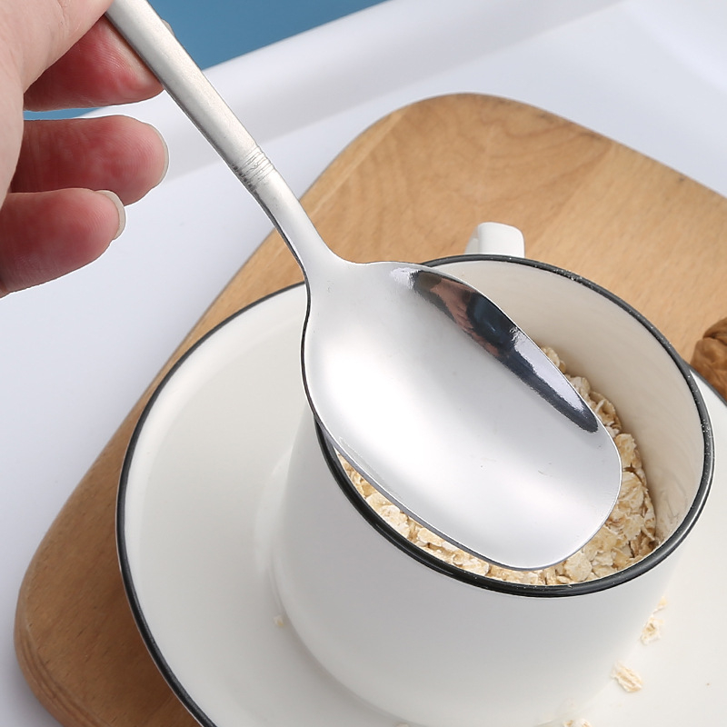 Korean Soup Spoon Stainless Steel 8 Inch Rectangular Spoon with Long Handle for Home,Kitchen