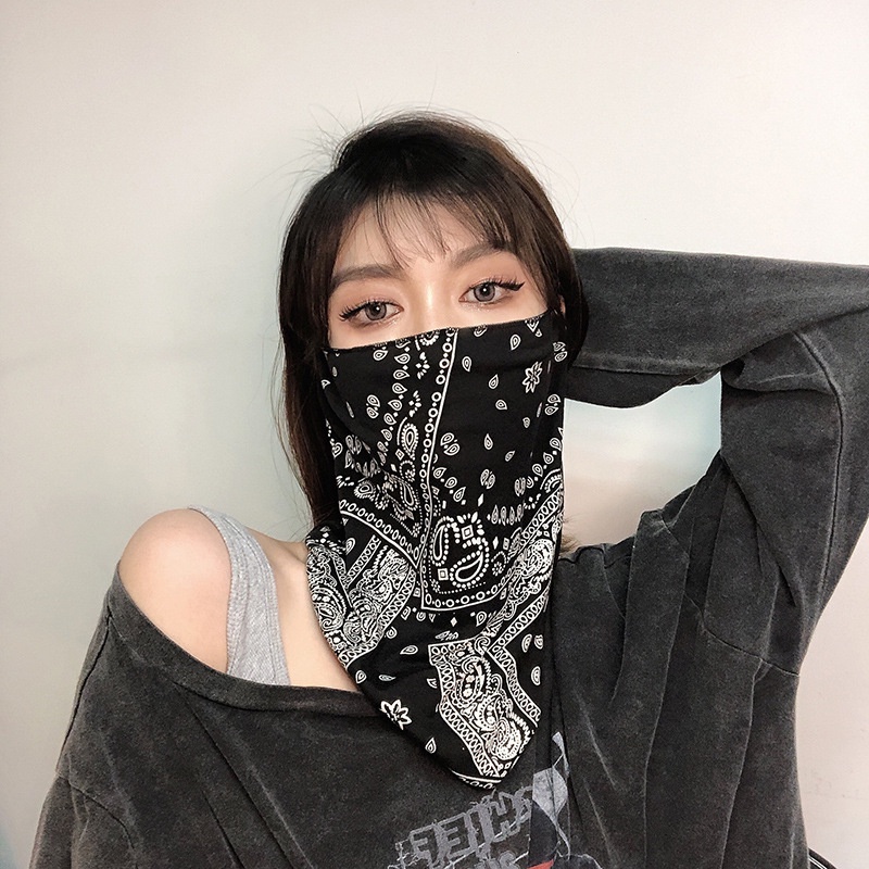 Korean Style Cashew Flower Sunscreen Mask Set Female Hanging Ear Face Towel Neck Protector Influencer Sunshade Ice Sleeve Driving Veil