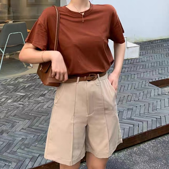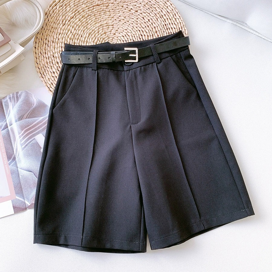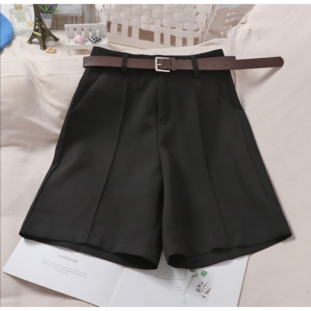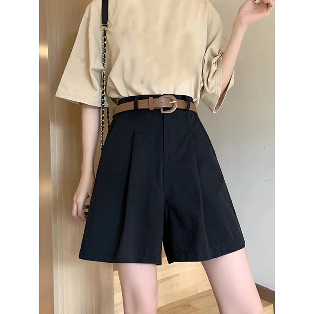 Korean Style Chic Mid-length Shorts High-waisted Shorts w/pockets w/belts COD #9230