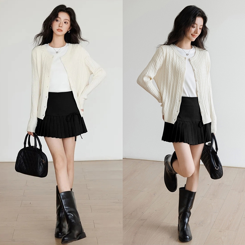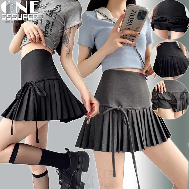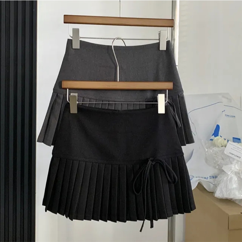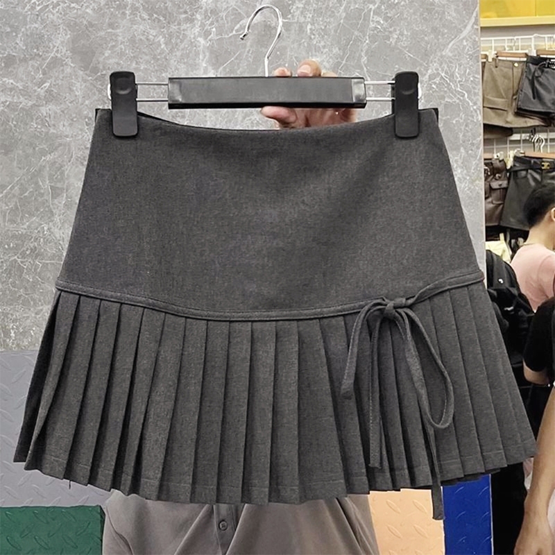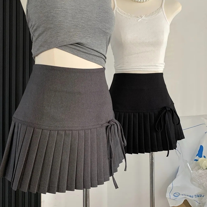 Korean Style High Waist Pleated Skirt Bow Tie A-line Sexy Short Skirt (with Lining)
