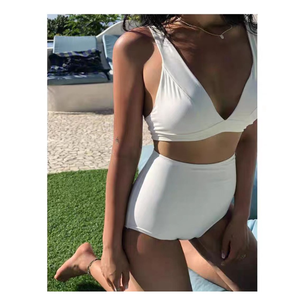 Korean Style New Solid Color Two Piece Swimsuit Triangle Bikini women's high waist swimsuit
