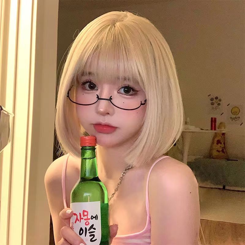 Korean Style Short Bob Wig Black Yellow Creamy White Wigs With Bangs Synthetic Wigs for Women Brown Lolita Cosplay Party Natural Wig