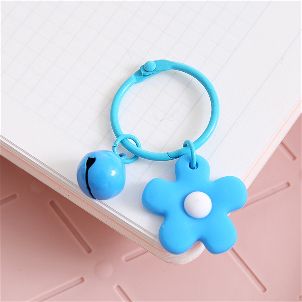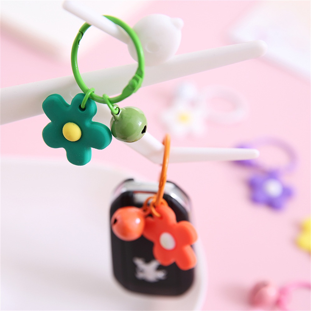 Korean Style Small Fresh Flower Key Chain Cute Candy Color Bell Key Ring Women Fashion Bag Pendants Car Key Holder Gifts