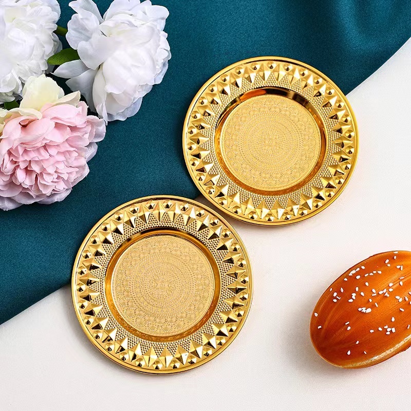 Korean cuisine stainless steel barbecue disc cake plate Steak round tray Western high-quality tablew