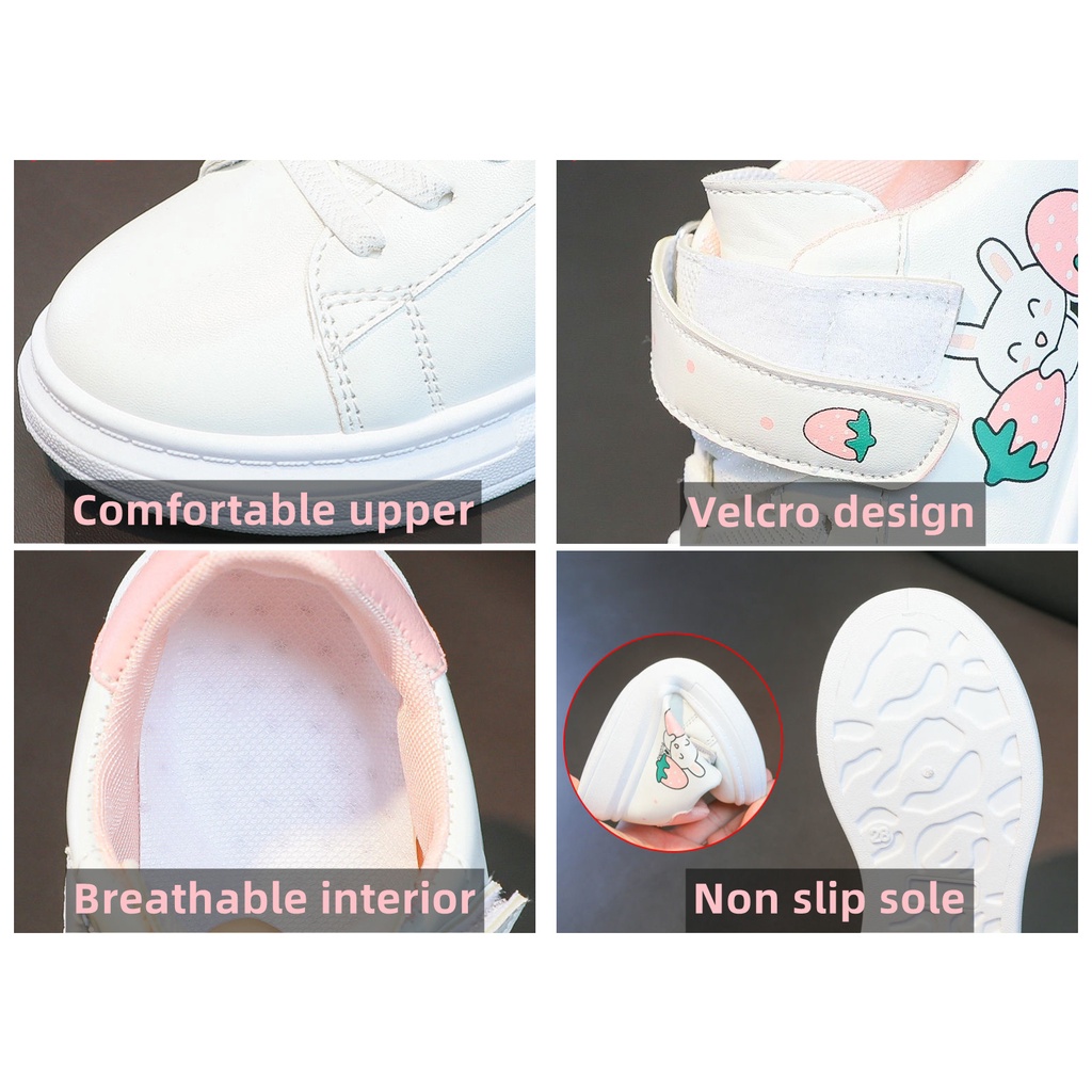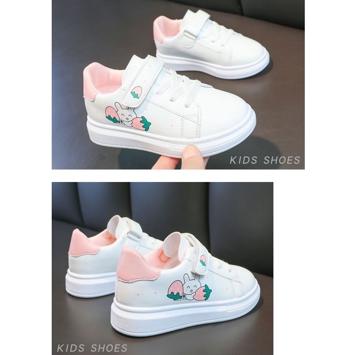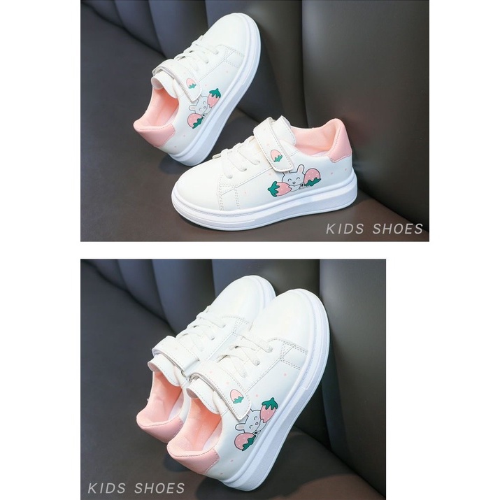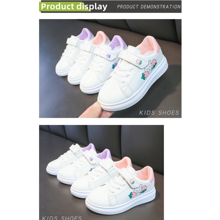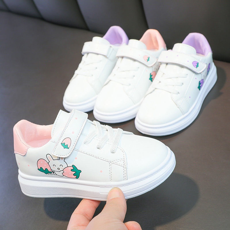 Korean fashion shoes for kids girls school white sneakers 3-12years for children with box(size26-37)