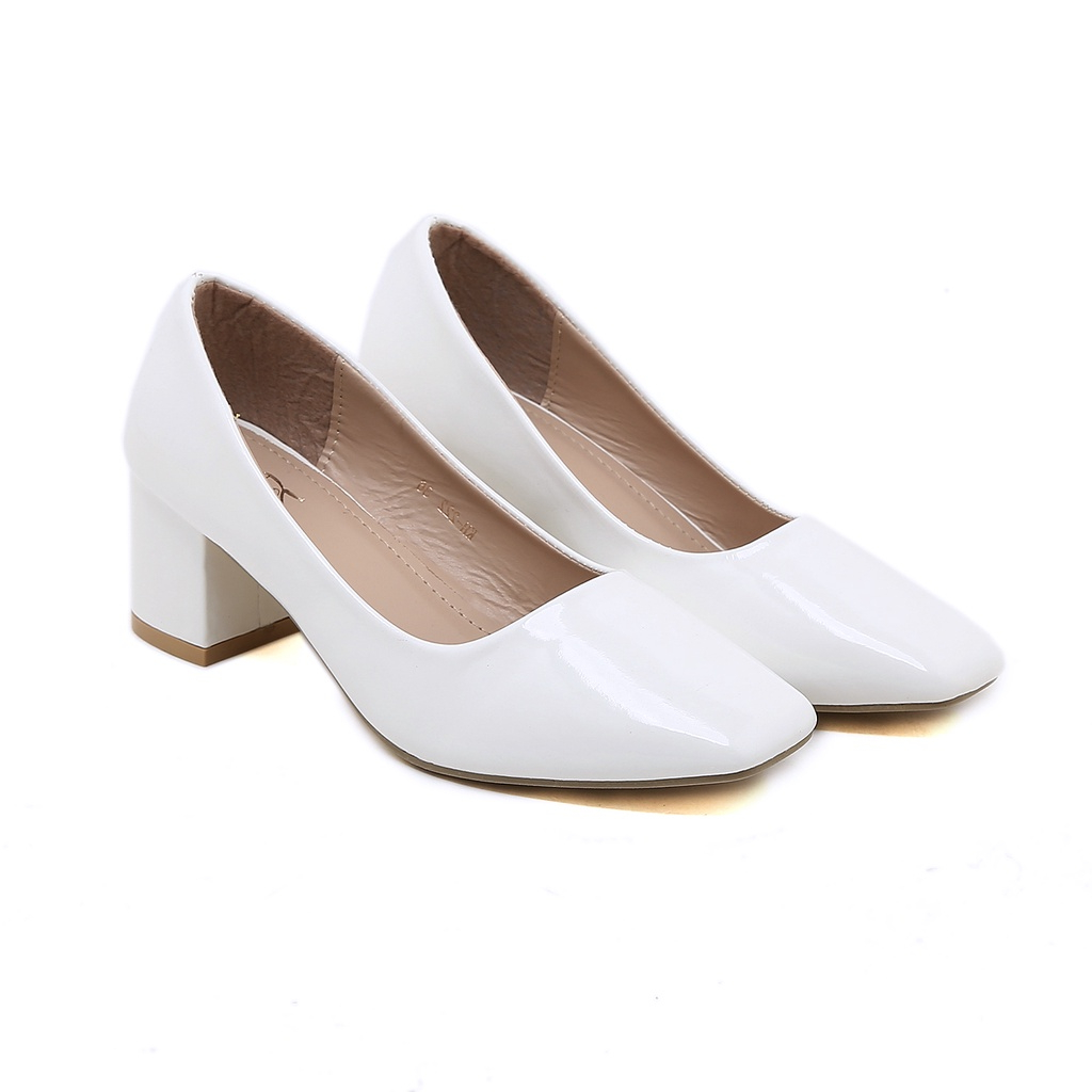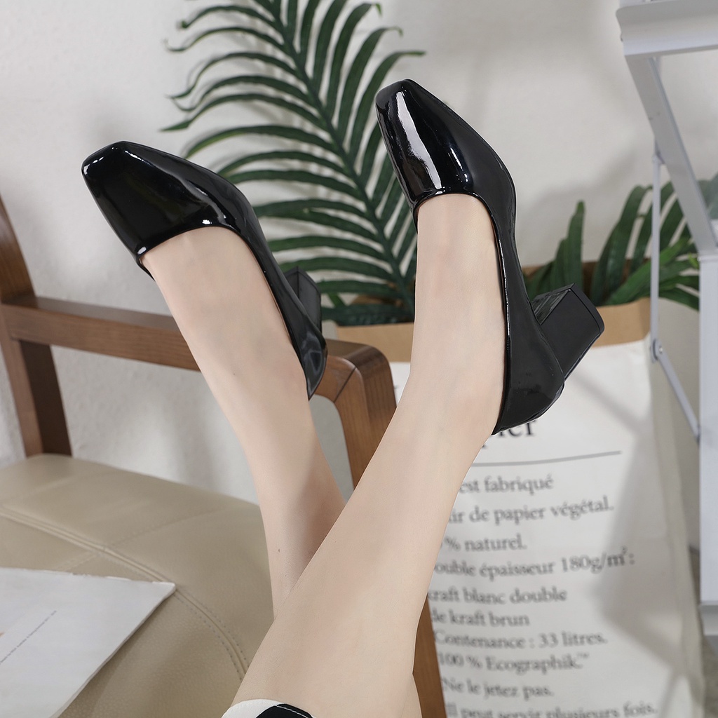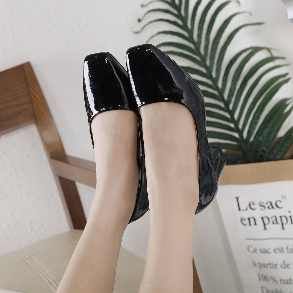 【Lucky girl】Korean fashion square toe heels glossy sandals KH222