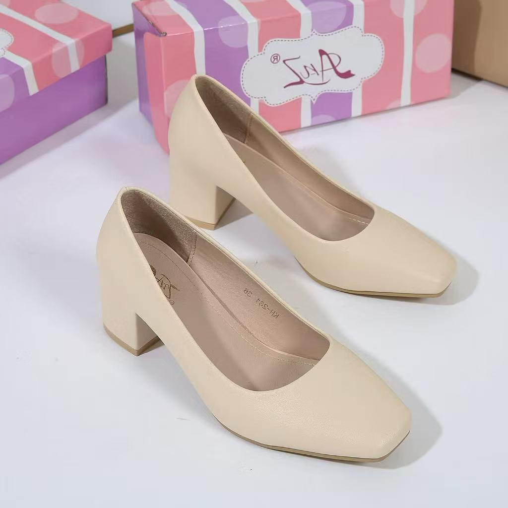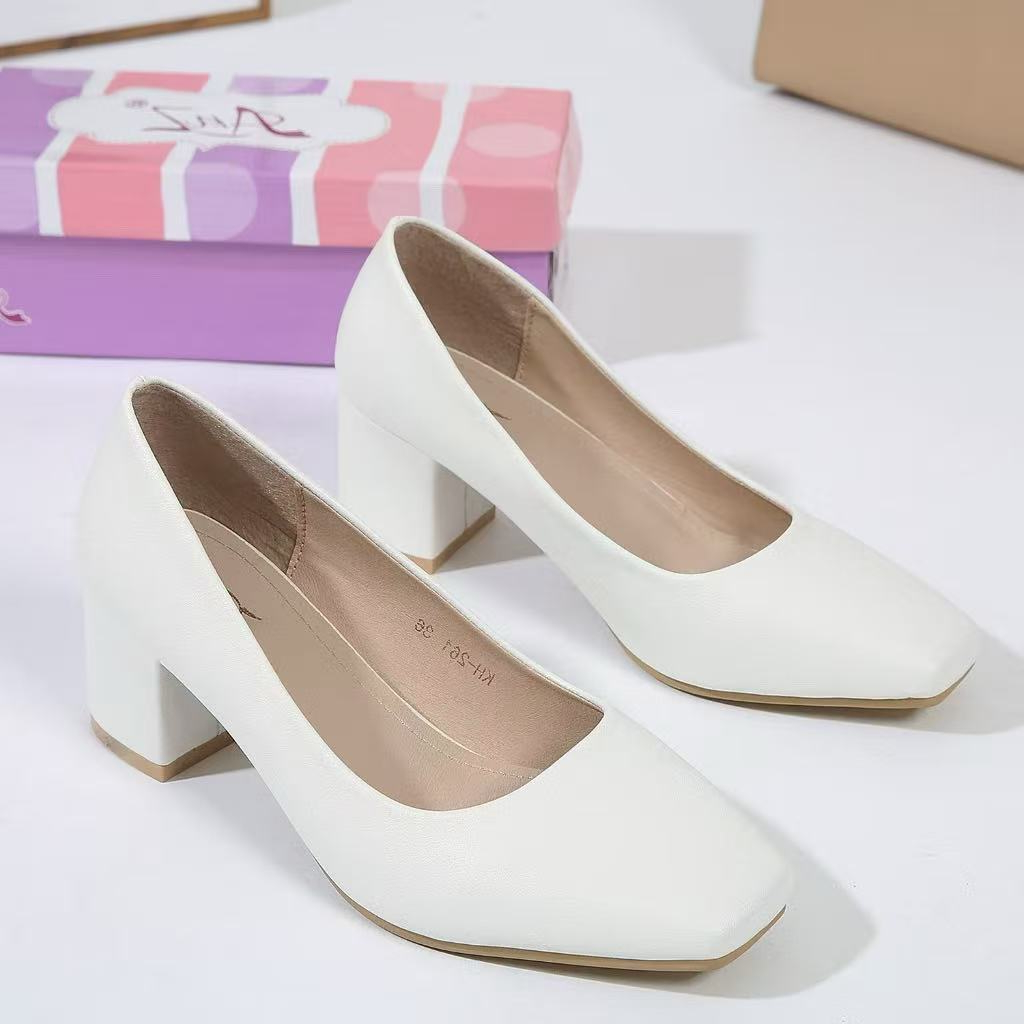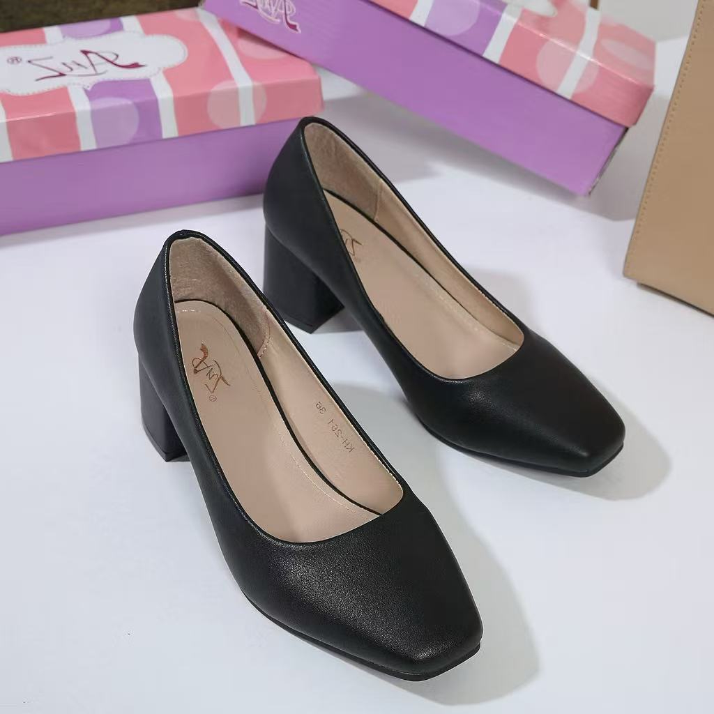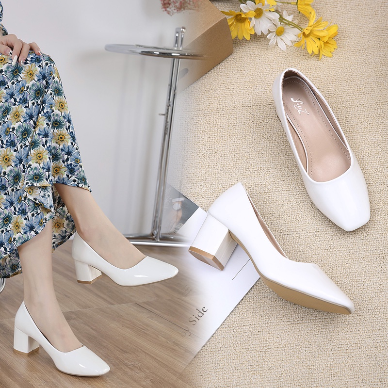 【Lucky girl】Korean fashion square toe heels glossy sandals KH222