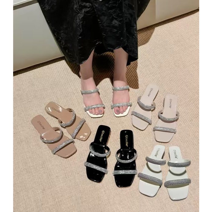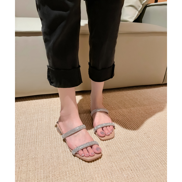 2026 New Korean Style Fashionable Versatile Crystal Heel Women's Sandals