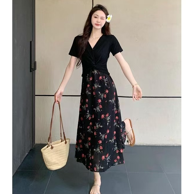 Korean long dress black formal dress for woman casual dress plus size dress 3xl elegant modest dress