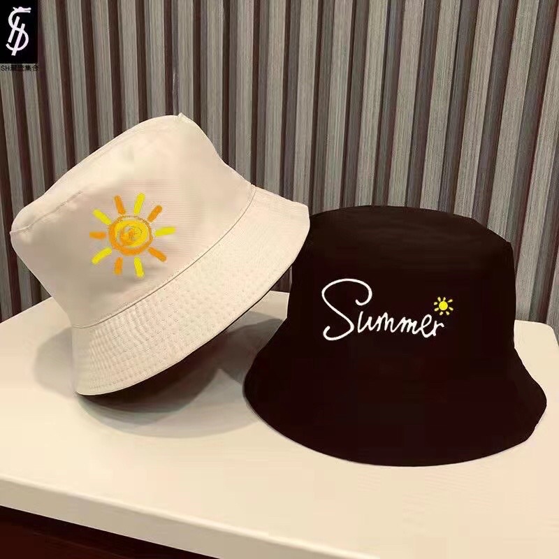 Korean style Sunlock Bucket Hat Summer Bucket Hat cutie Pattern hat Reversible Printing Bucket Hat