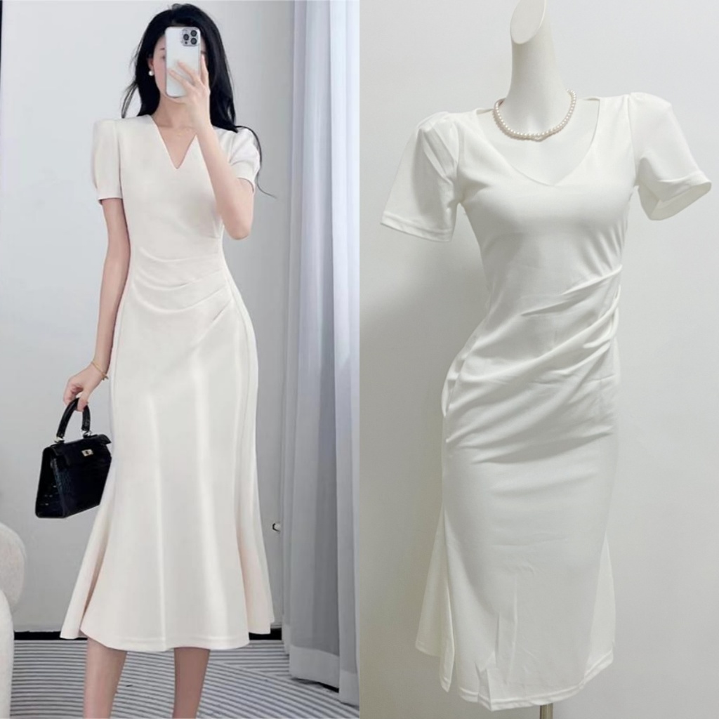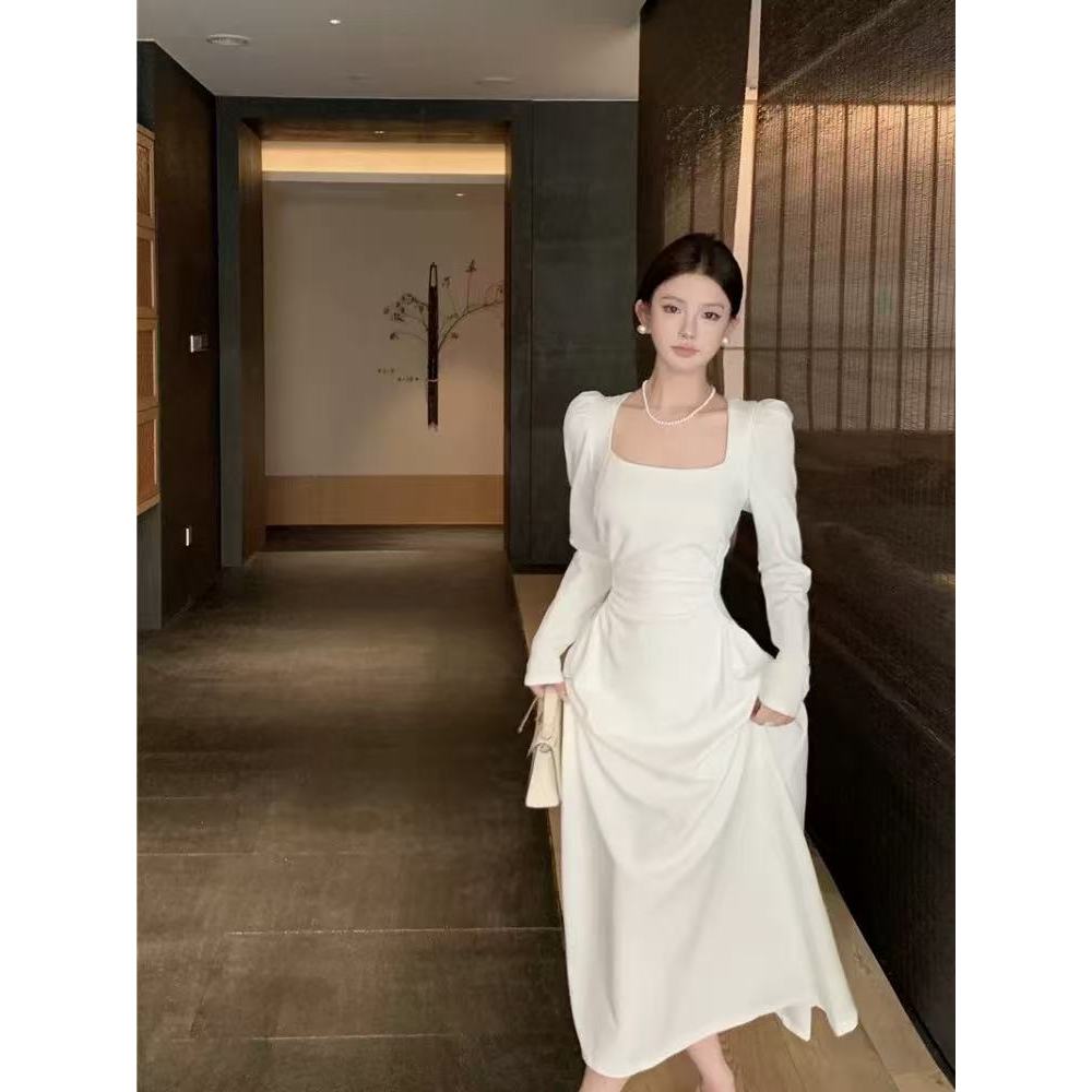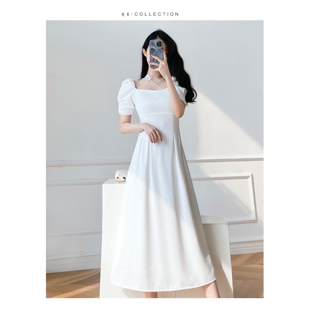 Korean white dress for civil wedding beach outfit long dress formal dress plus size christening XXL