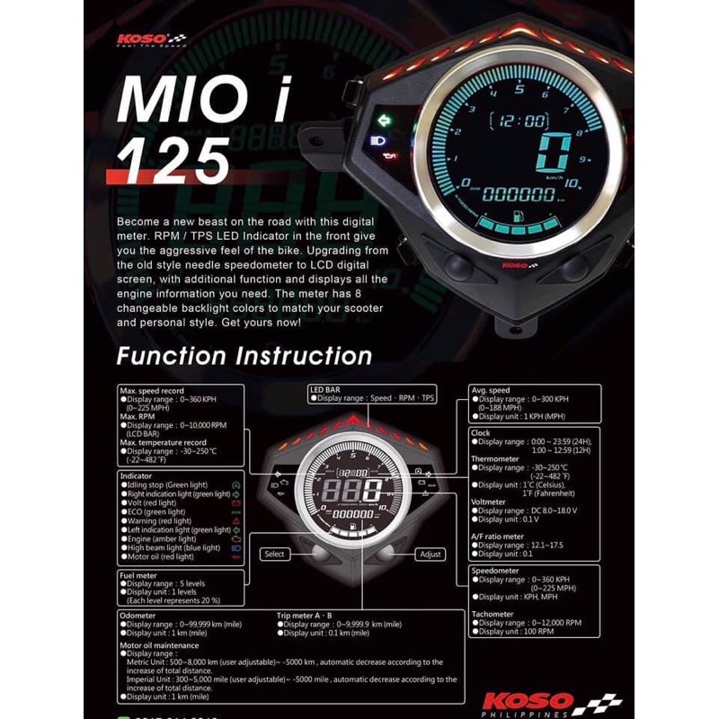 Koso Digital Speedometer 8 Colors Backlight for MIO I 125 M3 (Unang Modelo)