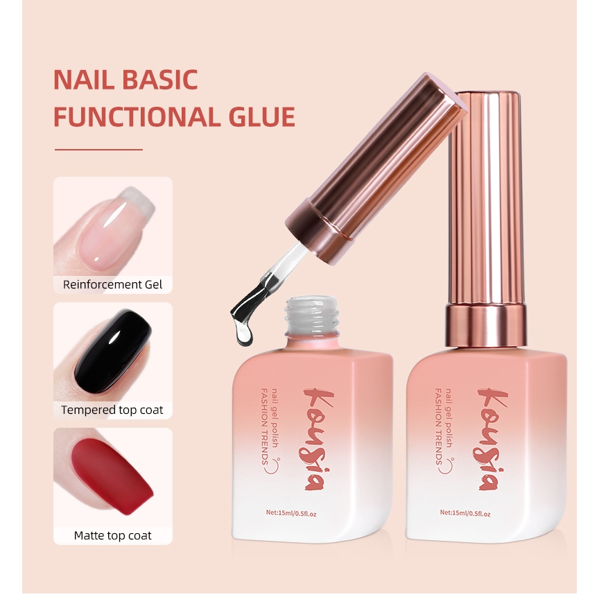 Kousia 15ML Top Coat Nail Base Gel Matte Top Coat Nail Primer Nail Art Soak Off Nail Functional Gel
