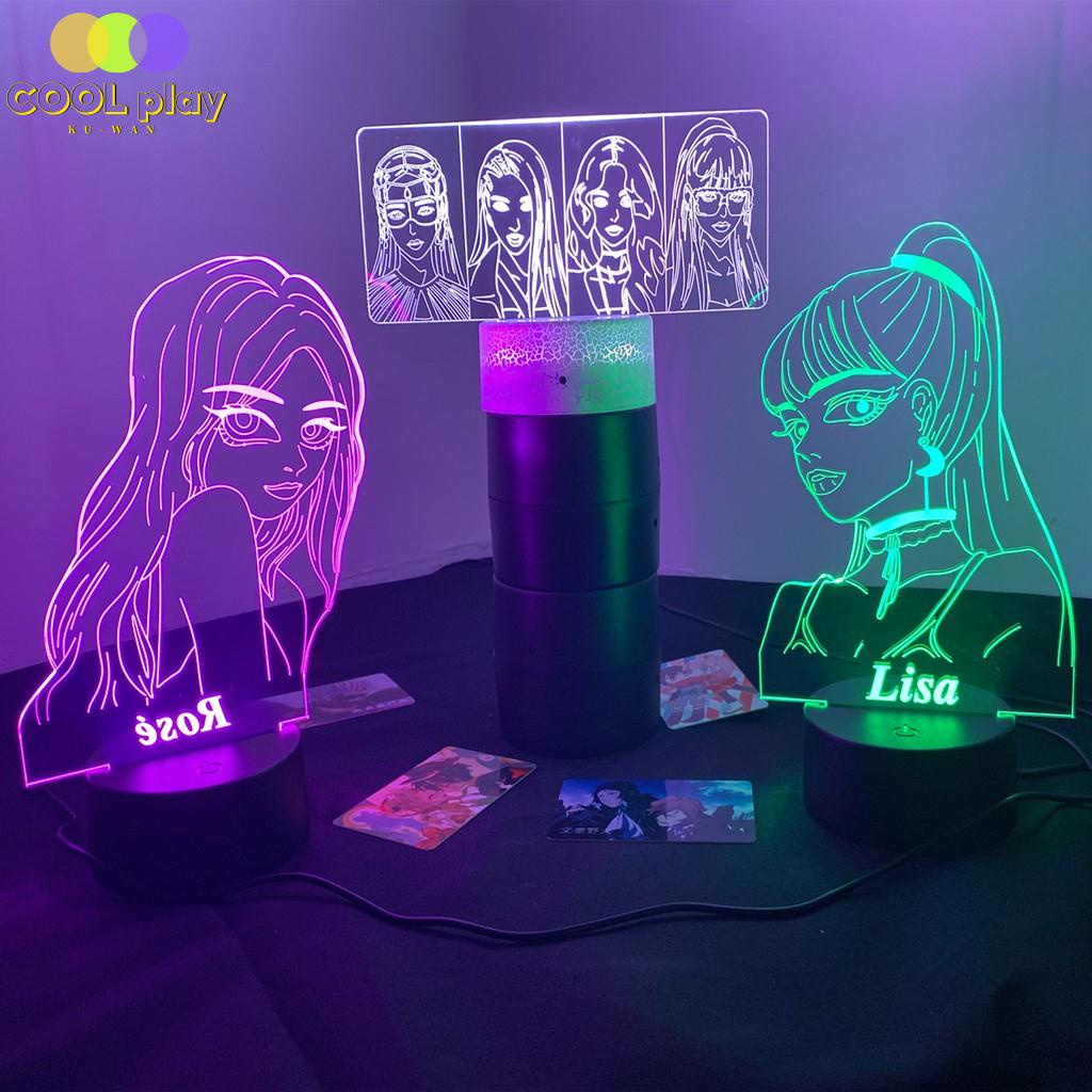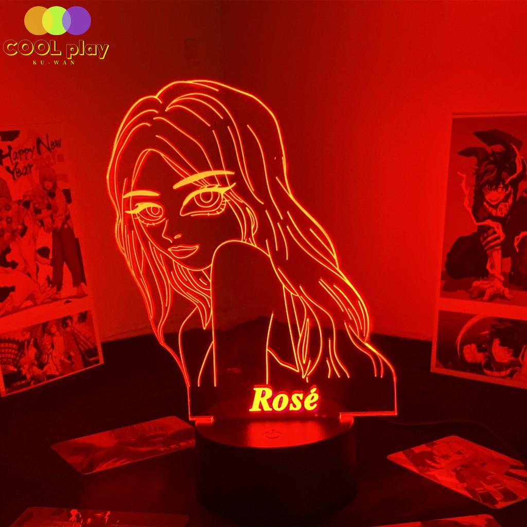 Kpop Idol group Black Pink 3D Night Light Room Decor fans Gift Rose and Lisa Creative Table Lamp*-**