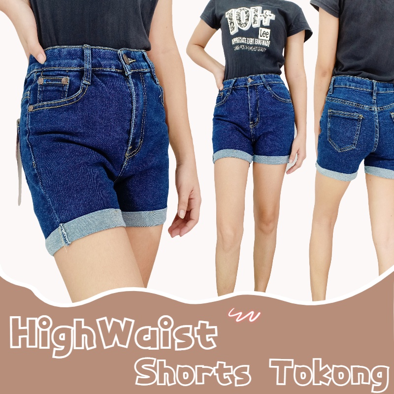 Kpop fashion high-waisted denim maong shorts jeans loose slim folded Korean style hot