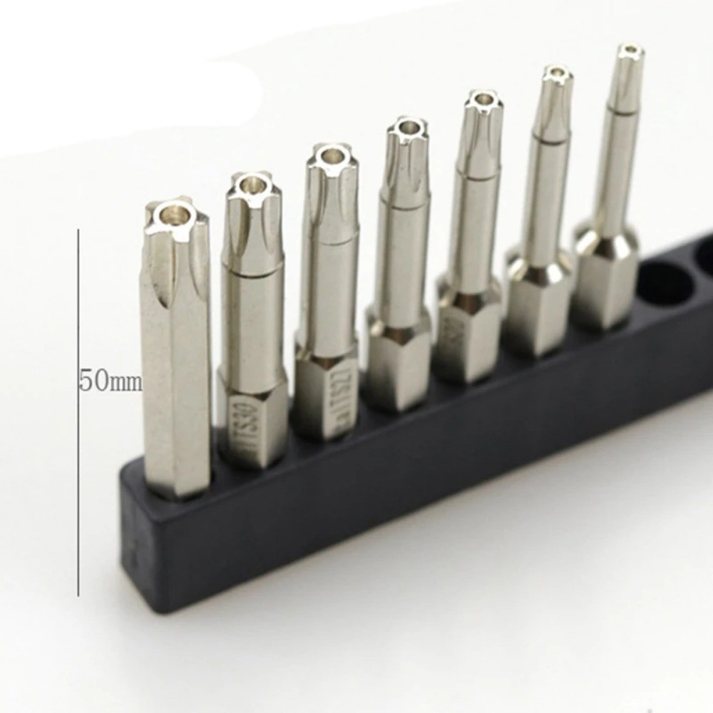 Krachtige 7Pcs 50mm 5 Point Torx Magnetic Screwdriver Set 1/4" Hex Shank Hand Tools T10 T15 T20 T25 T27 T30 T40