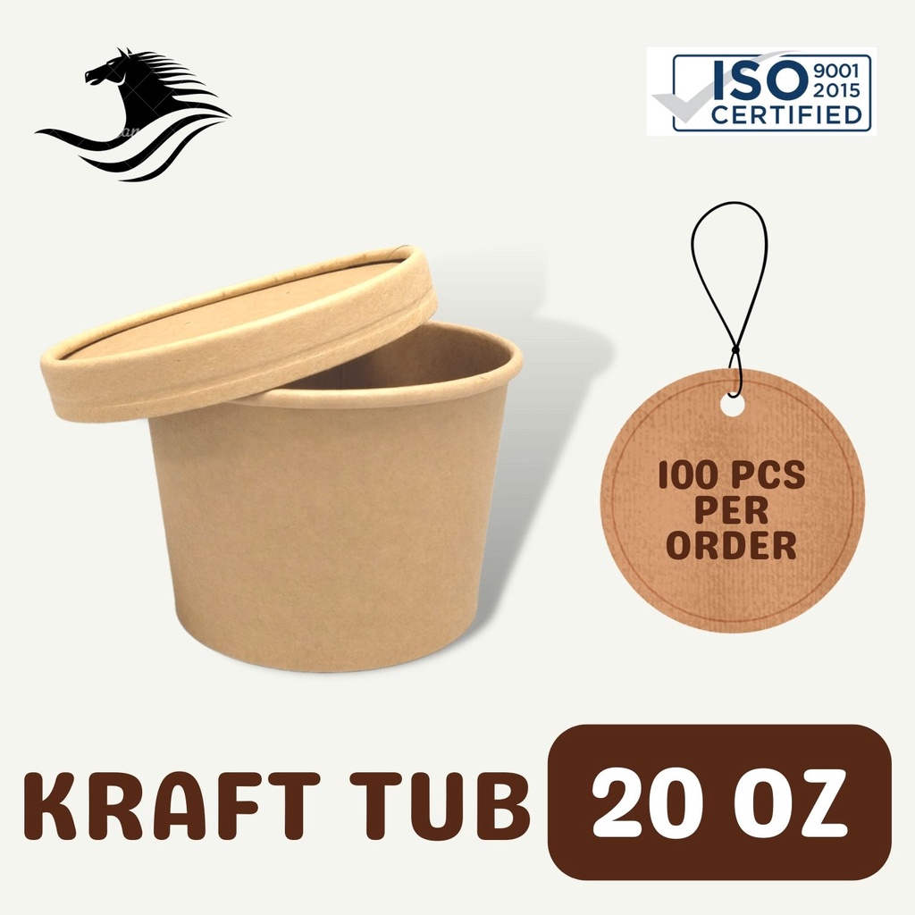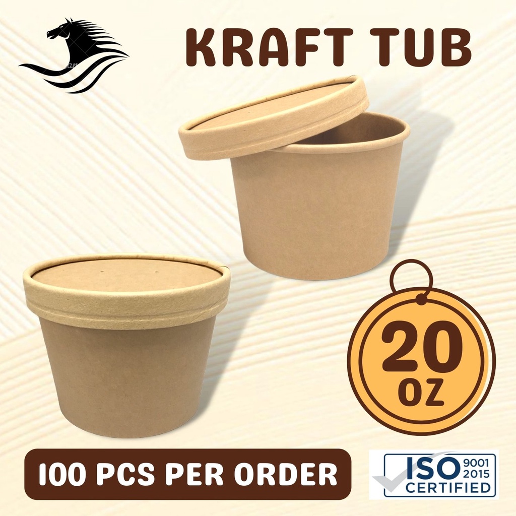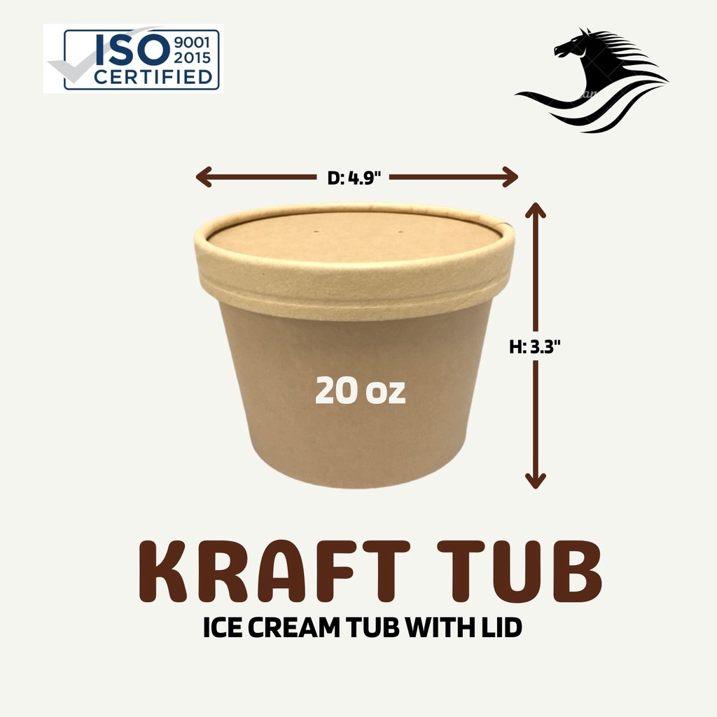 Kraft Paper Tub 20oz w/ lid Ice Cream Cup w/ Lid (100pcs / order) Takeout Cup with lid
