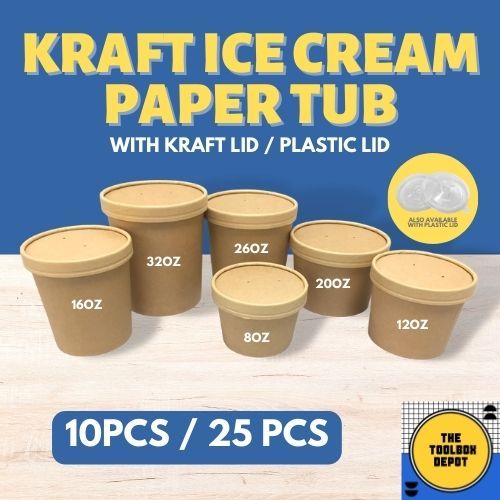 Kraft Paper Tub / Kraft Container with Lid 8oz 12oz 16oz 20oz 26oz Ice Cream Pint (10pcs/25pcs)