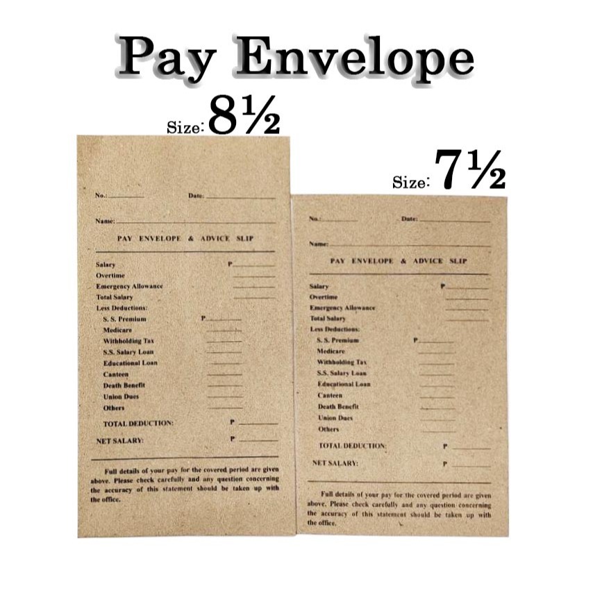 Kraft Pay Envelope & Advice Slip / Payroll Envelope with print (1box or 500pcs)