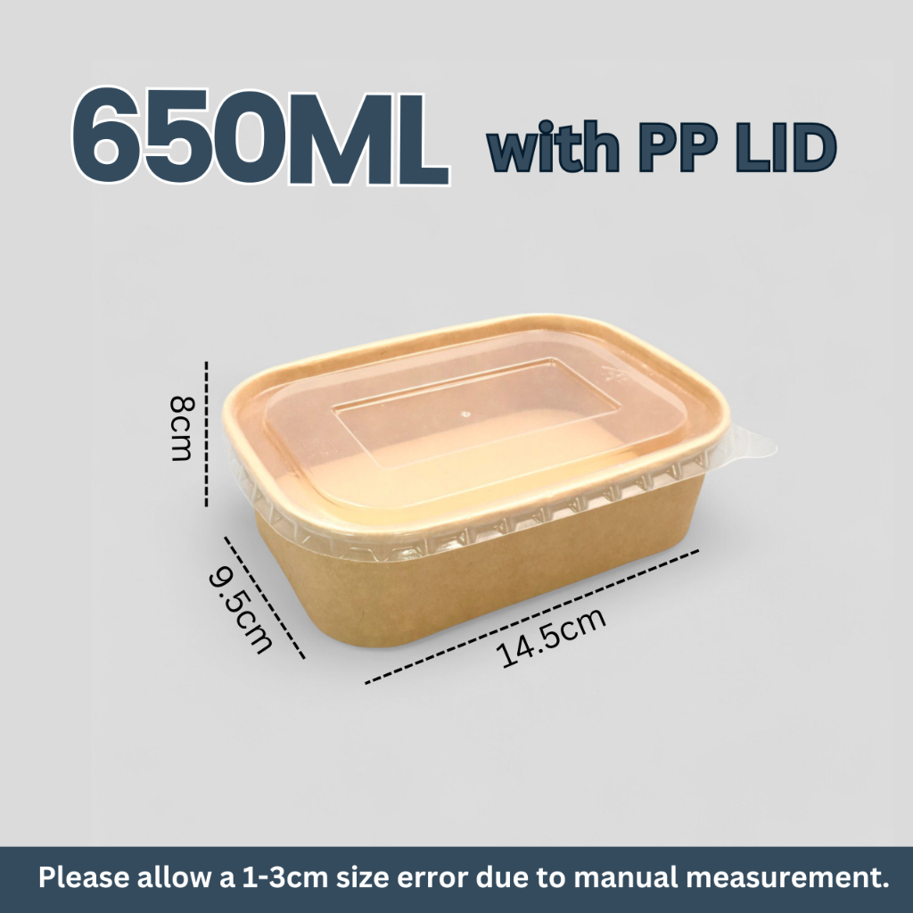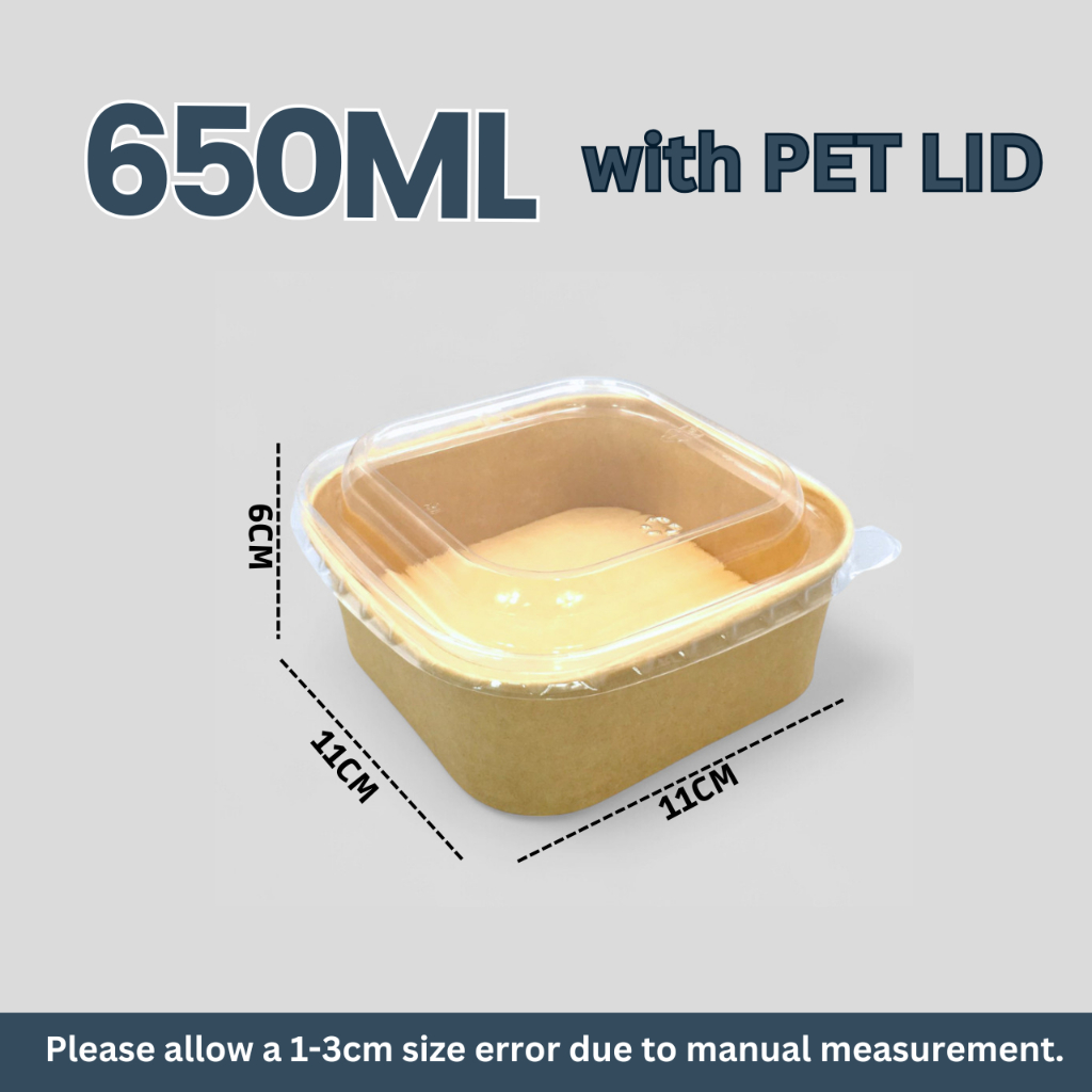 15PCS Kraft Square Rectangle Bowl with PP/PET Lid Disposable Salad Takeout Meal Box Container Bowl