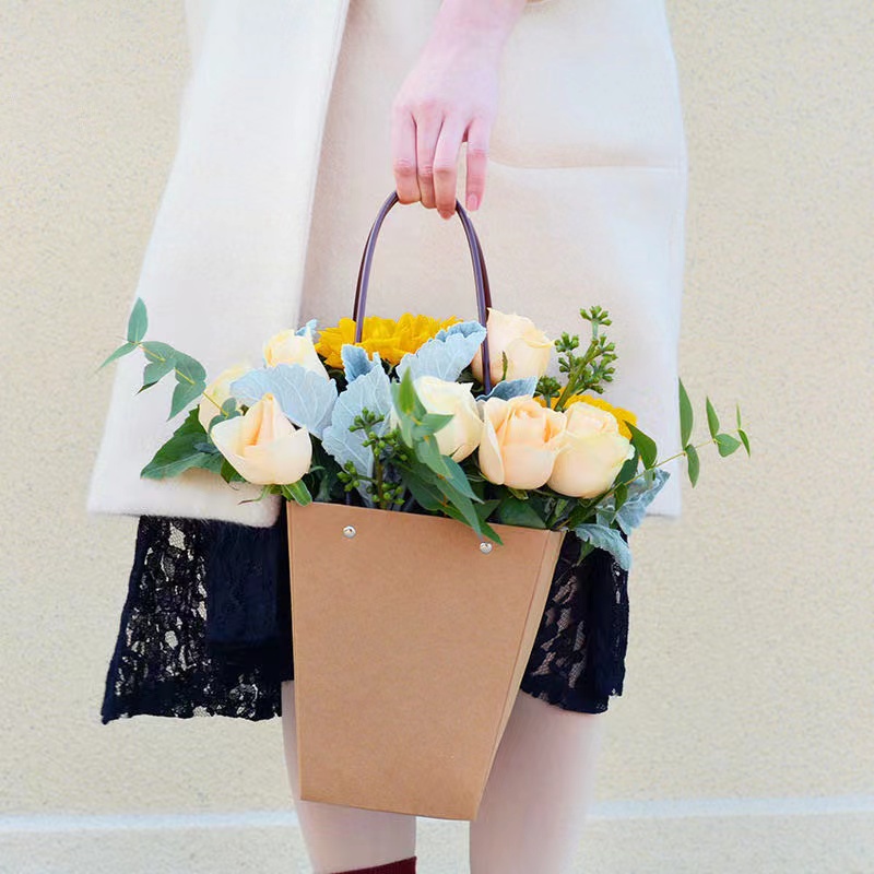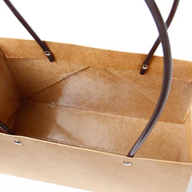 Kraft paper tote bag flower shop wrapping paper gift packaging tote bag thickened waterproof