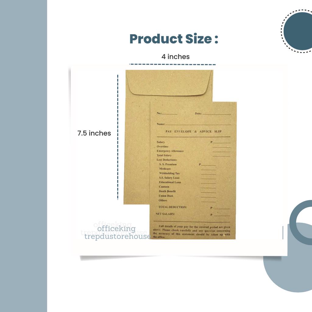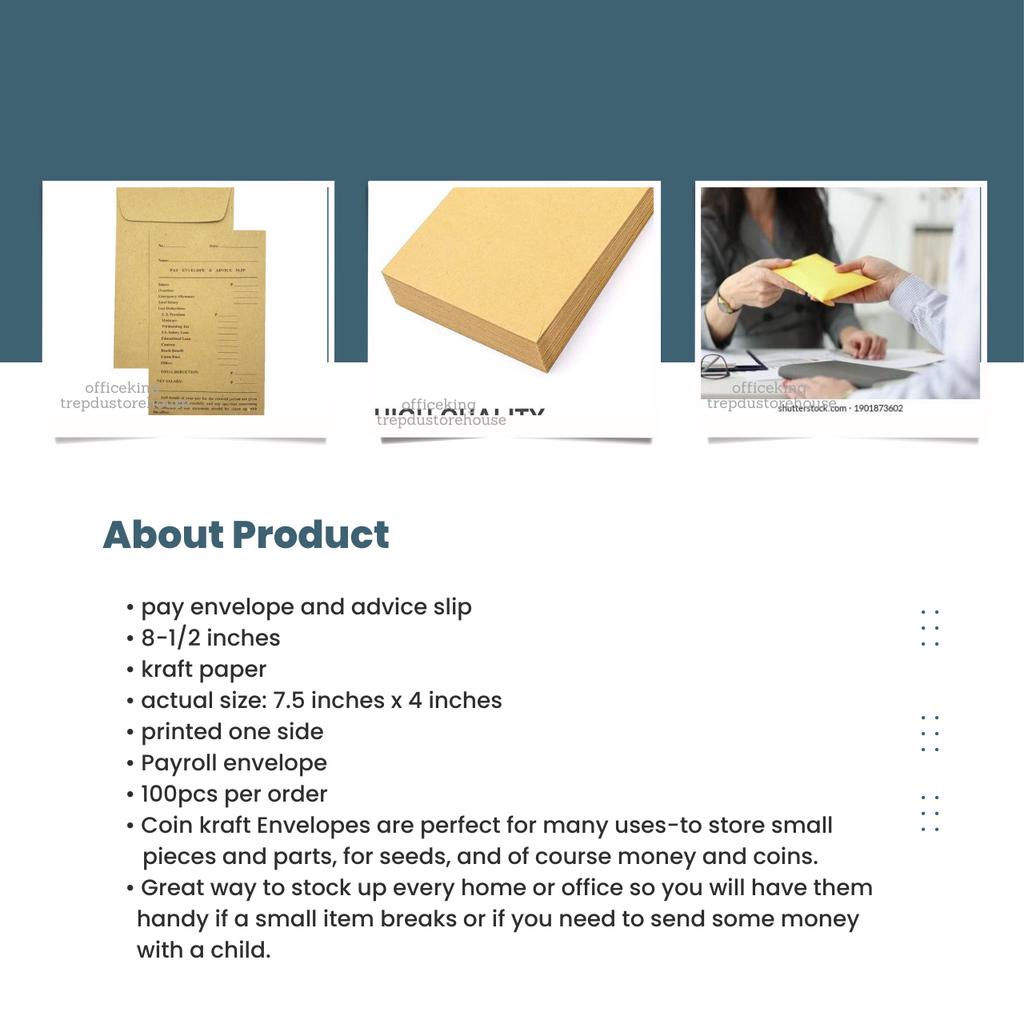 Kraft pay envelope and Advice slip 8-1/2 inches 100pcs