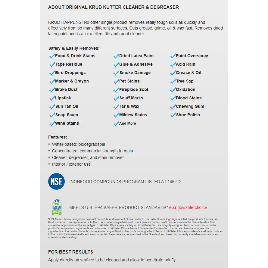 Krud Kutter Cleaner and Degreaser Stain Remover The Original Krud Kutter Concentrate