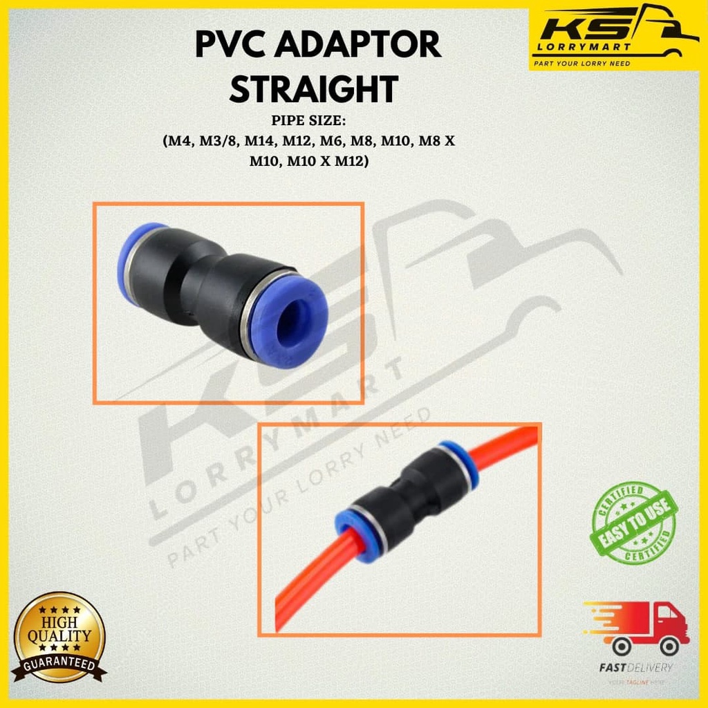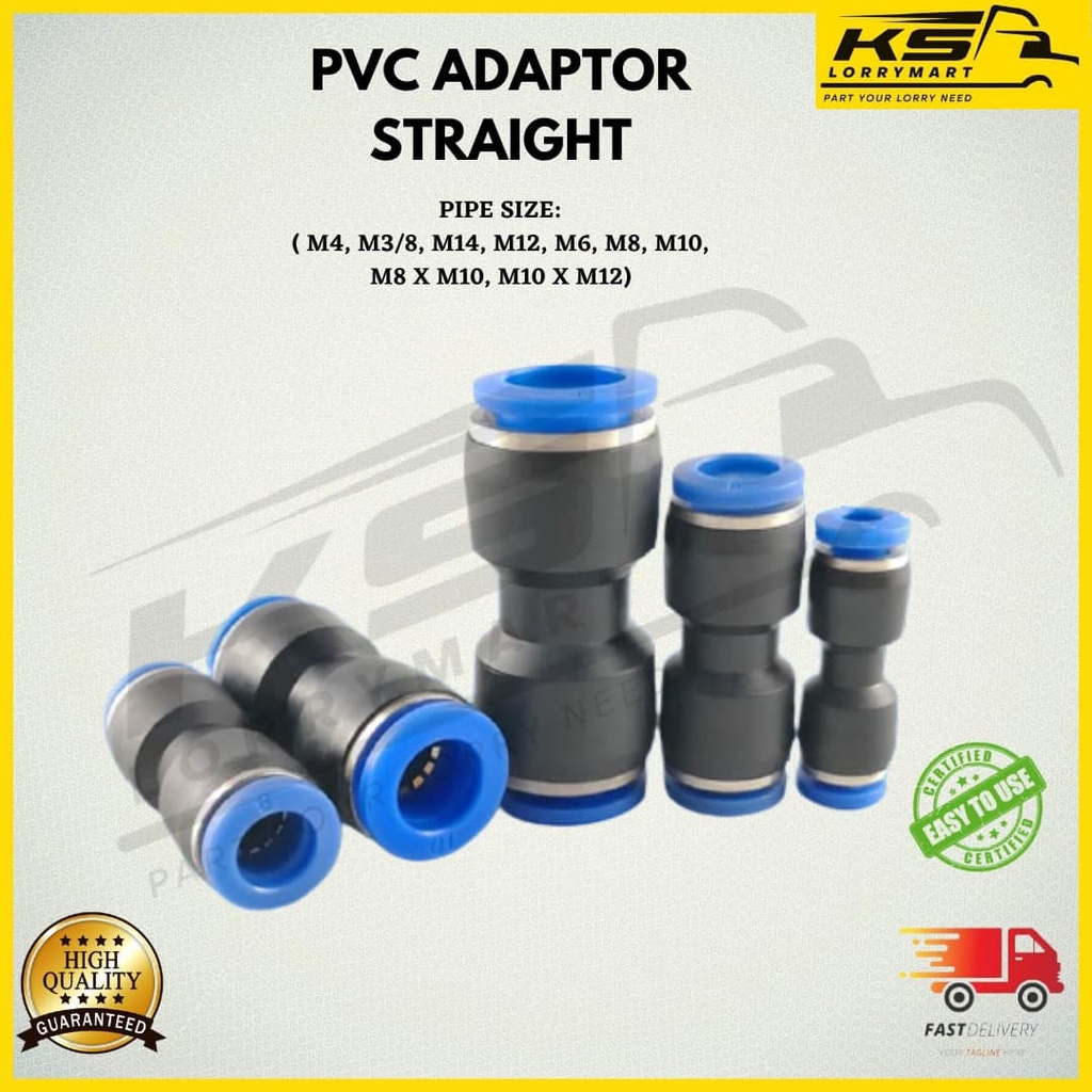 Ks PVC Adapter STRAIGHT / Connection PIPE Wind Upright (M4,M6,M8,M10,M12,3/8")