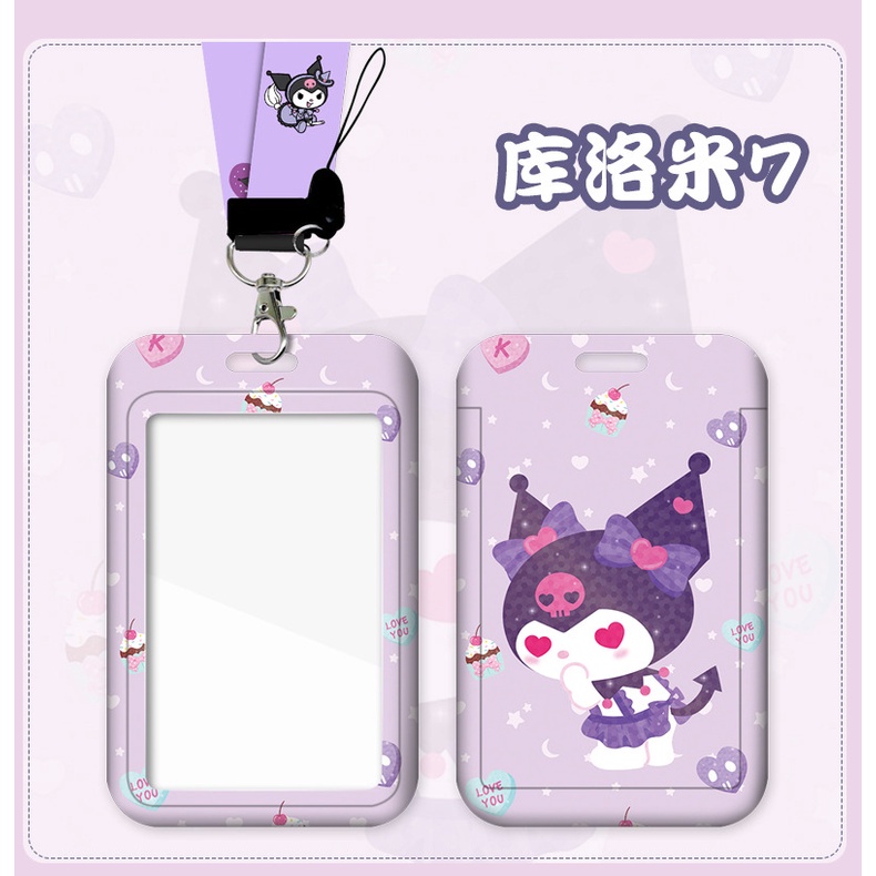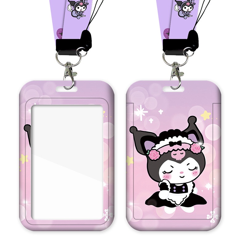 Kuromi Lanyards & Name Tags Sanrio Card Holder Case Set Cartoon Cute Kuromi Id Card Case