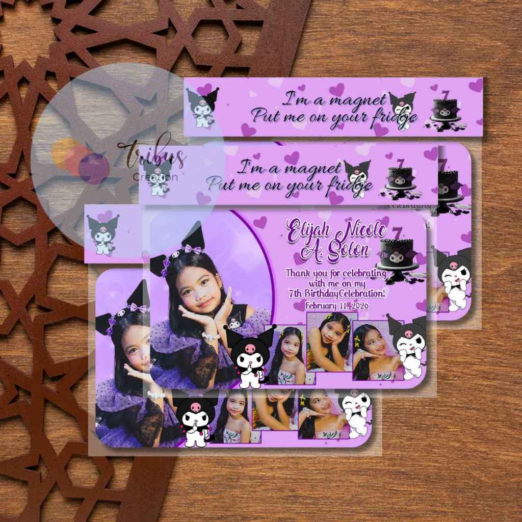 Kuromi Theme Personalized Ref Magnet for Christening Baptism Birthday Boho Theme Glittery souvenir