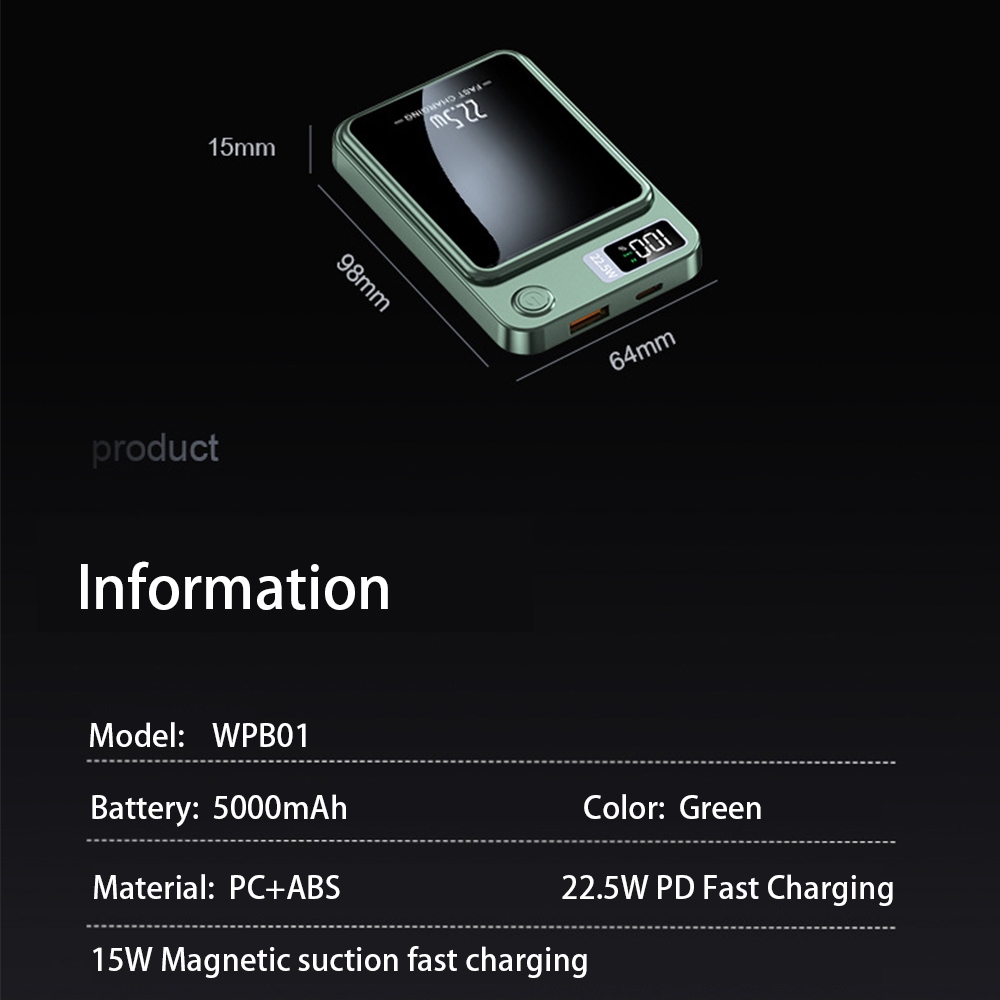 Kusky WPB01 Wireless magnetic powerbank 5000mAh 18W Fast Charging Power bank led display Slim and Portable