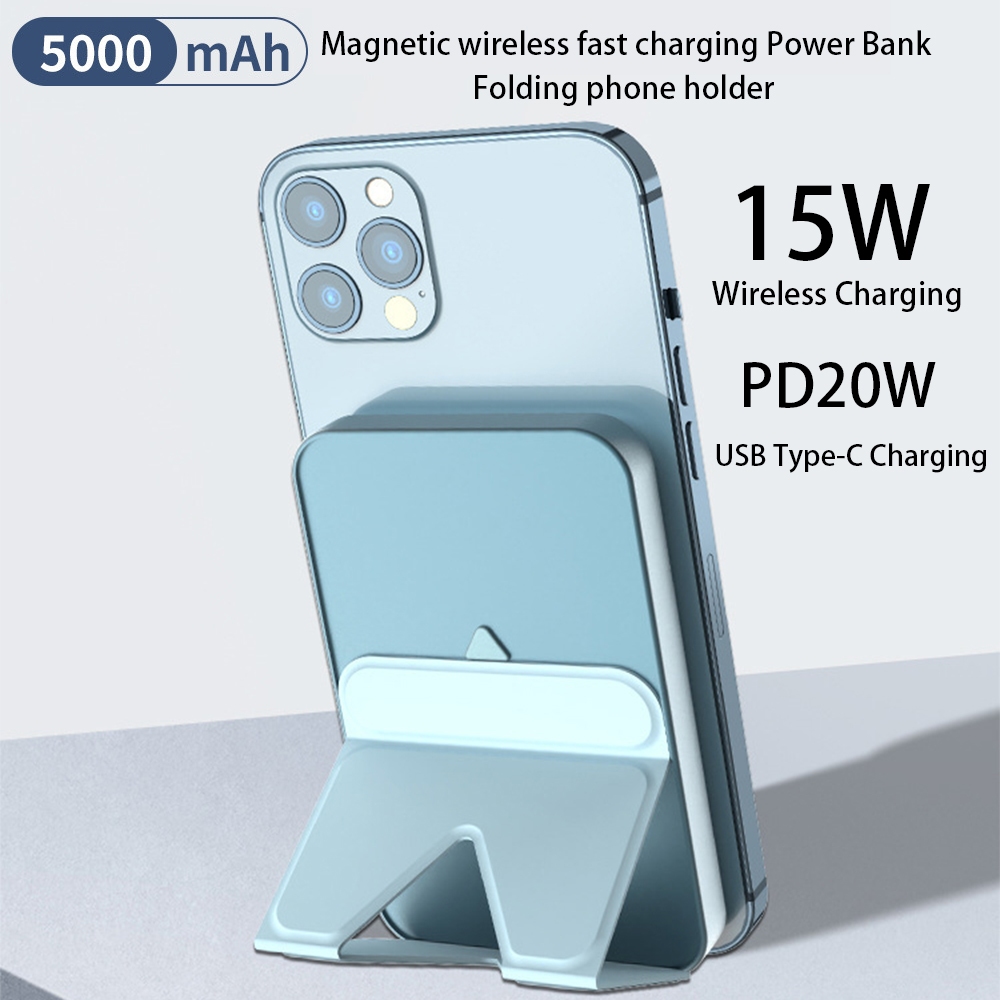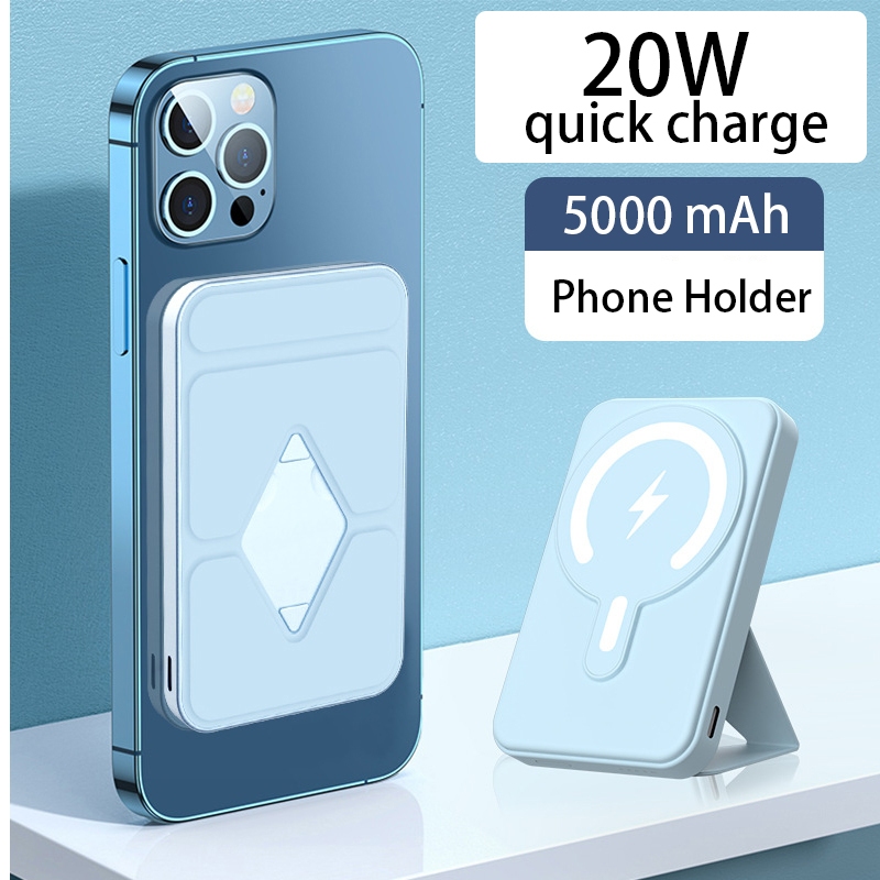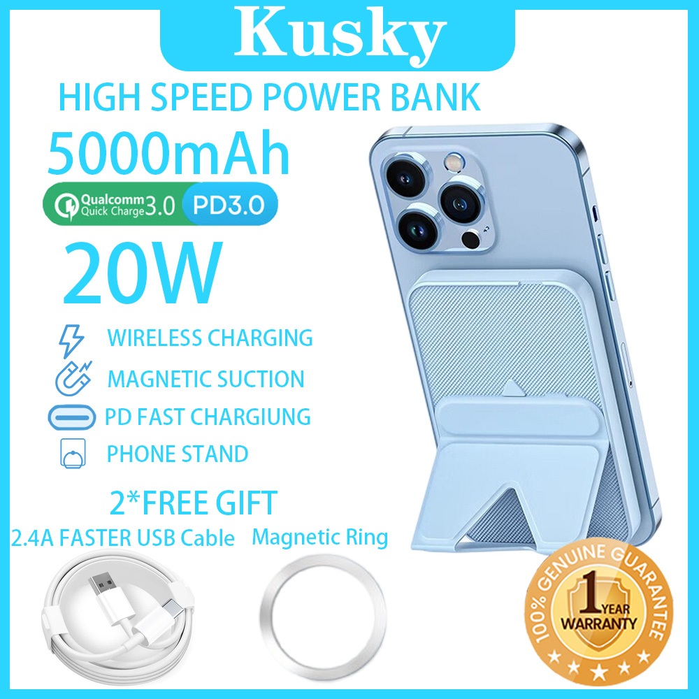 Kusky WPB02 Wireless magnetic powerbank 5000mAh 20W Fast Charging Power bank Slim and Portable with phone holder