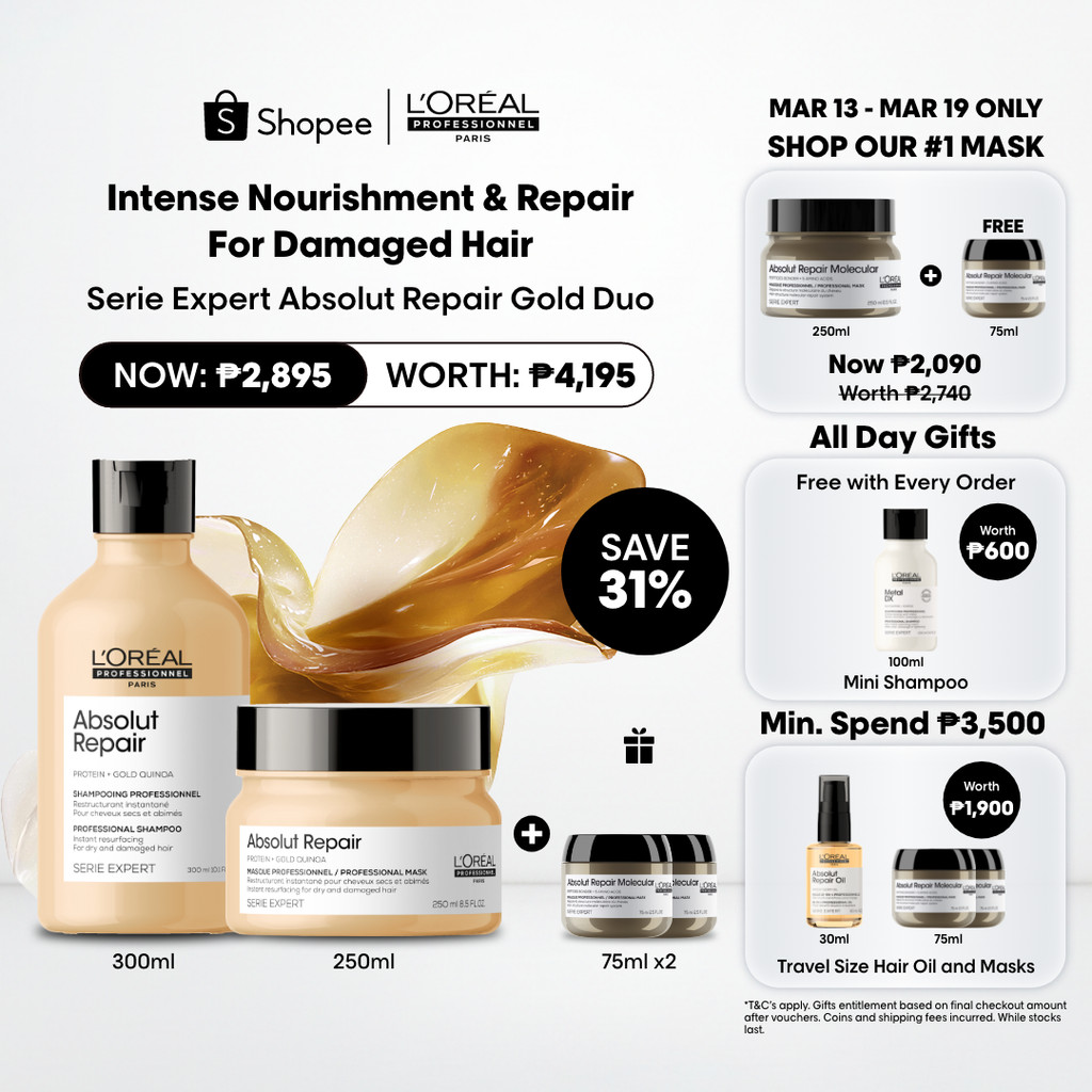 LOreal Professionnel Serie Expert Absolut Repair Gold Shampoo and Hair Mask Duo for Damaged Hair