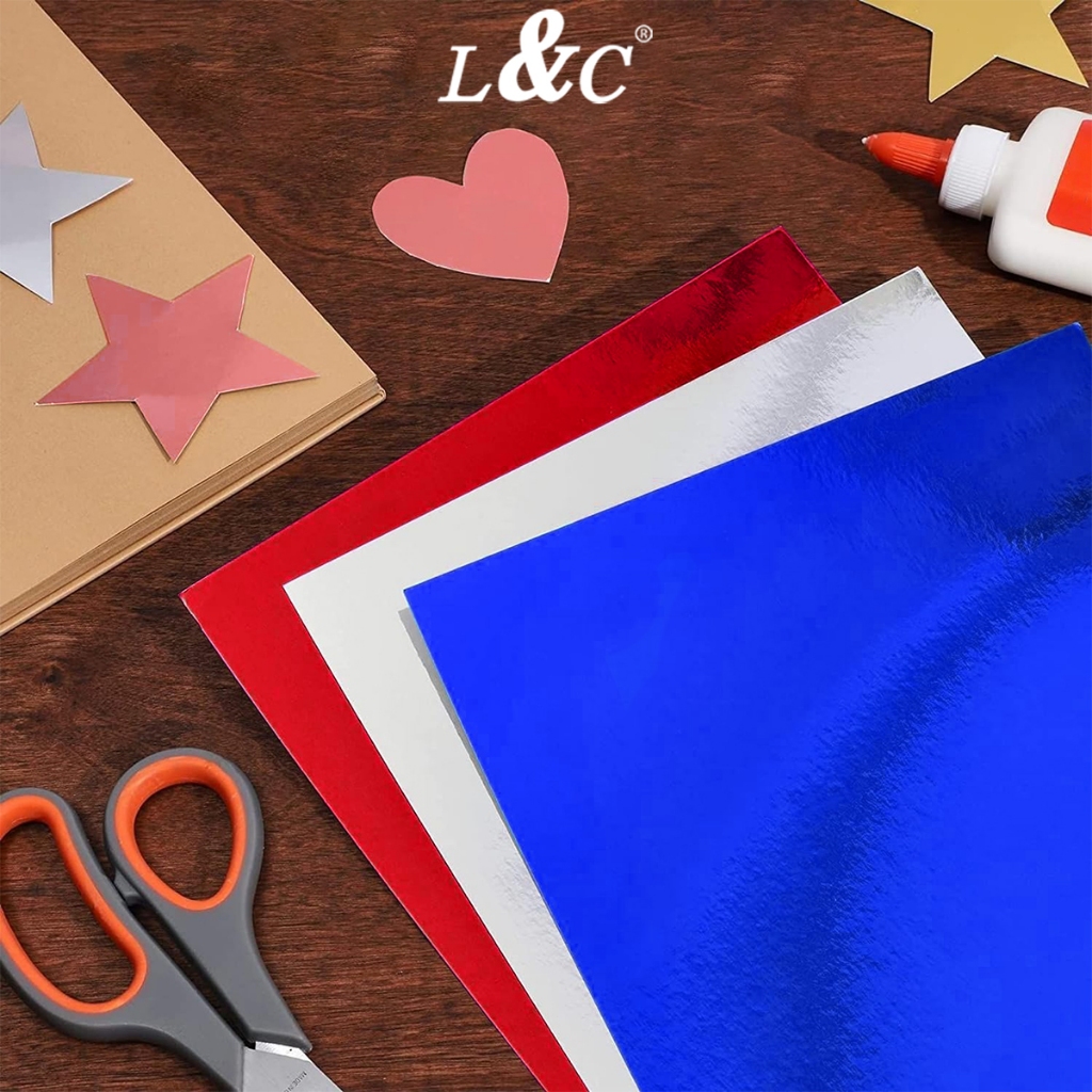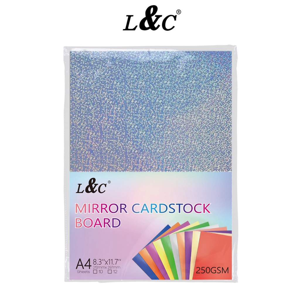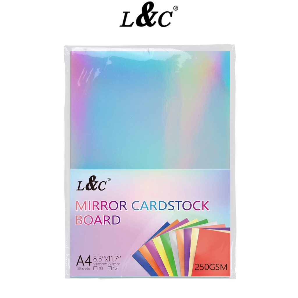 L&C 10pcs 250gsm Glitter and Shiny Metallic Mirror Cardstock Board DIY Paper for Arts TPC