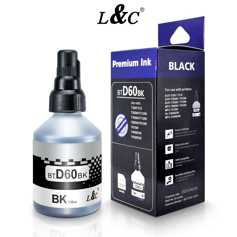 L&C 1Bottle BTD60 BK Ink Refill Brother BTD60 Ink Black 108ML Ink For Printer DCP-T420W