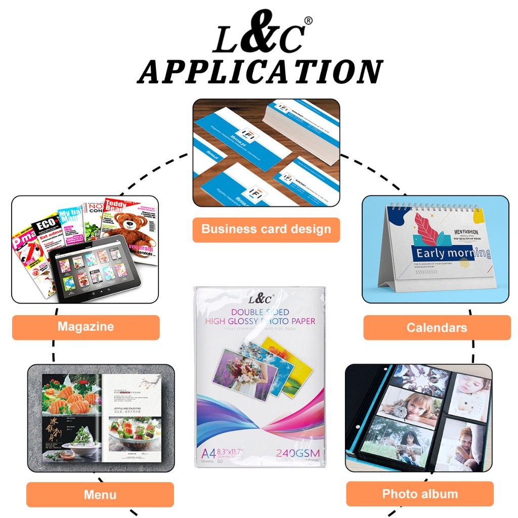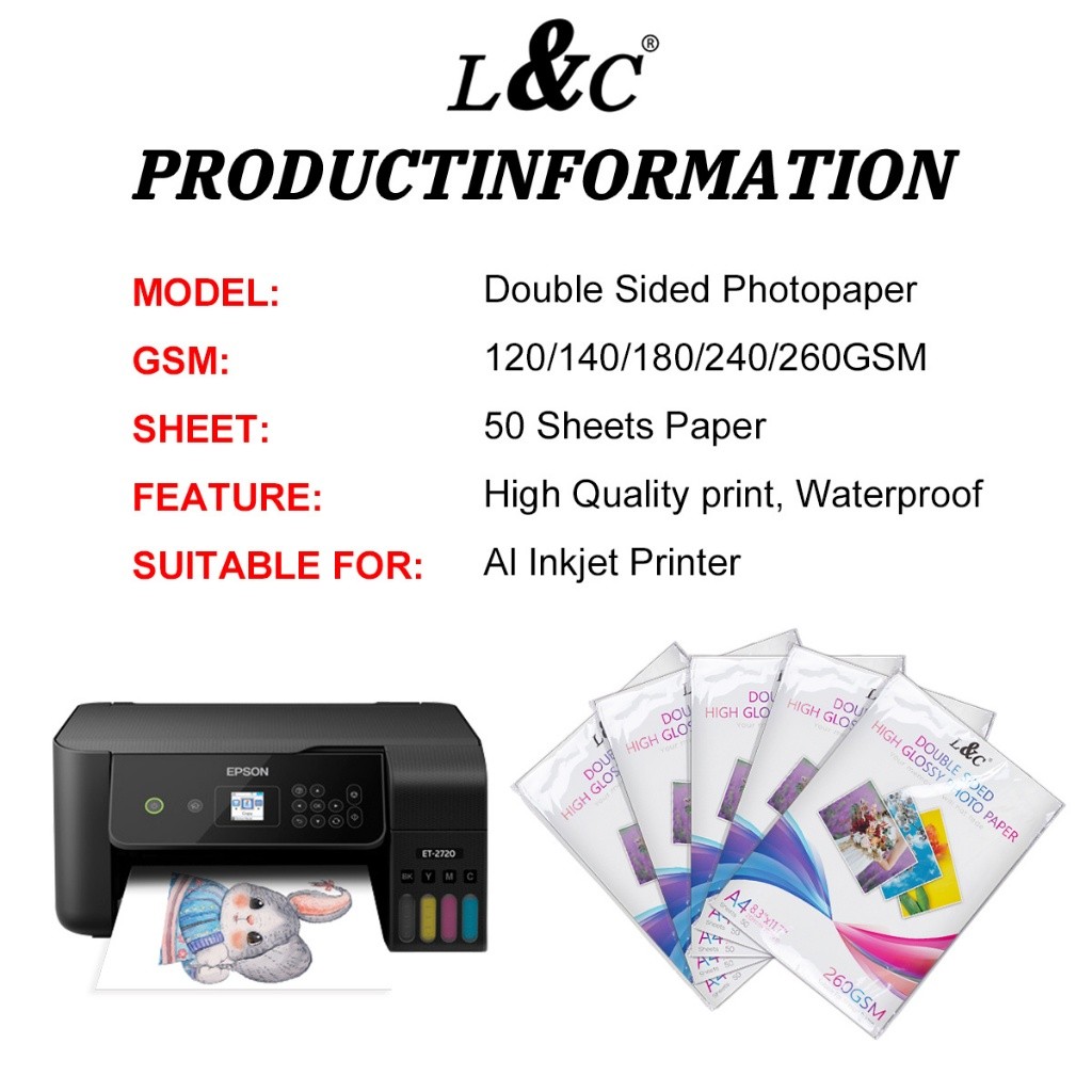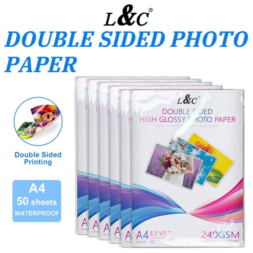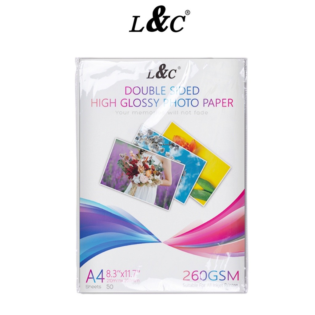 L&C Double Sided Glossy Photo Paper A4 Size 120 140 180 240 260GSM Double-sided Paper (50 Sheets)