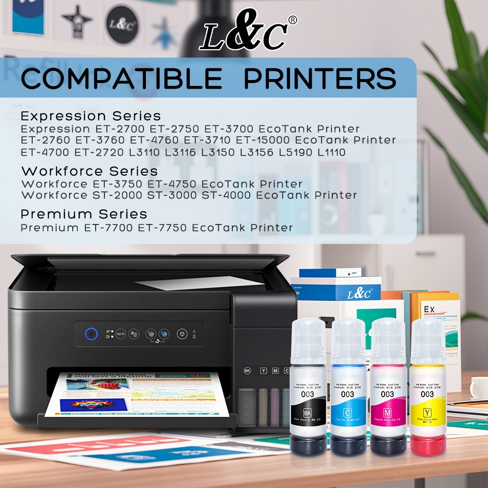 L&C Ink 003 Inkjet Printer Refill Dye Ink Compatible L3110 L3150 L3116 L3156 L1110