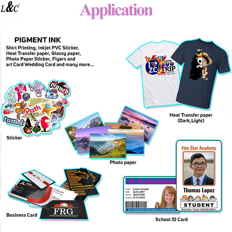 L&C Pigment Ink For Epson Printer 100ml For Inkjet Printer Transfer Papers Photo Paper Waterproof