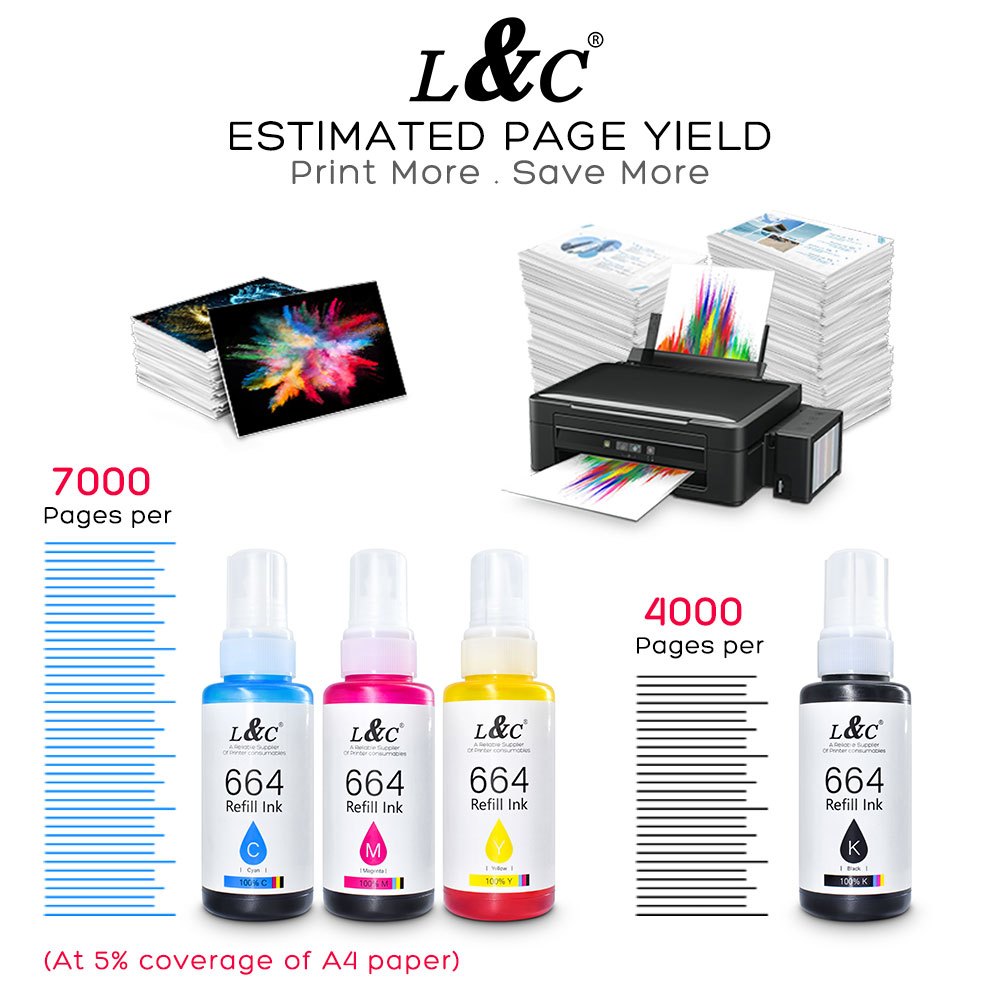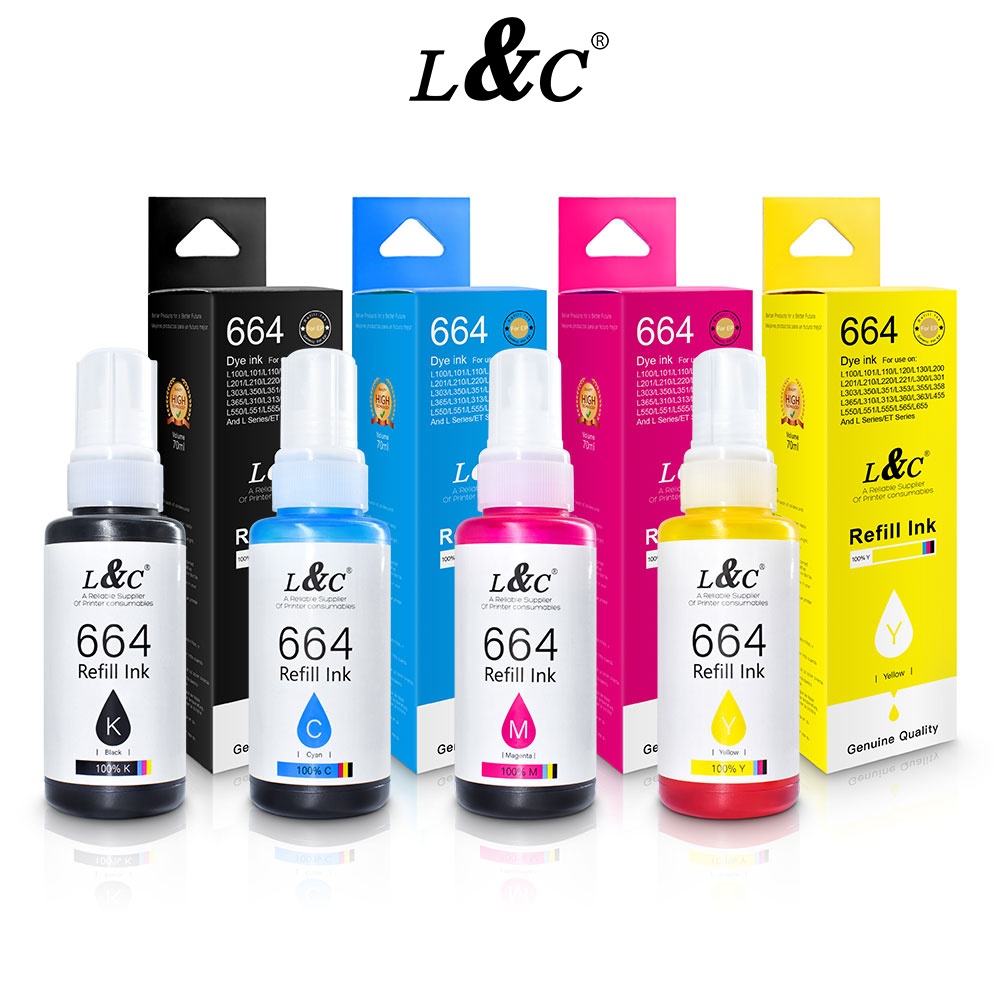 L&C Refill 664 Ink Dye Ink For L Series Printer L120 L100 L110 L130 L200 L201 L210 70ML