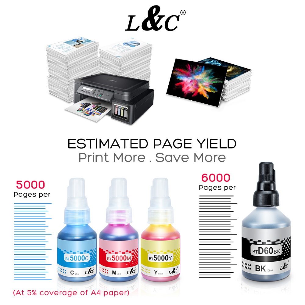 L&C Refill Ink BTD60Bk BT5000 BT6000 Genuine Ink For Brother BT6000bk BTD60 DCP-T420W T710W 108ML