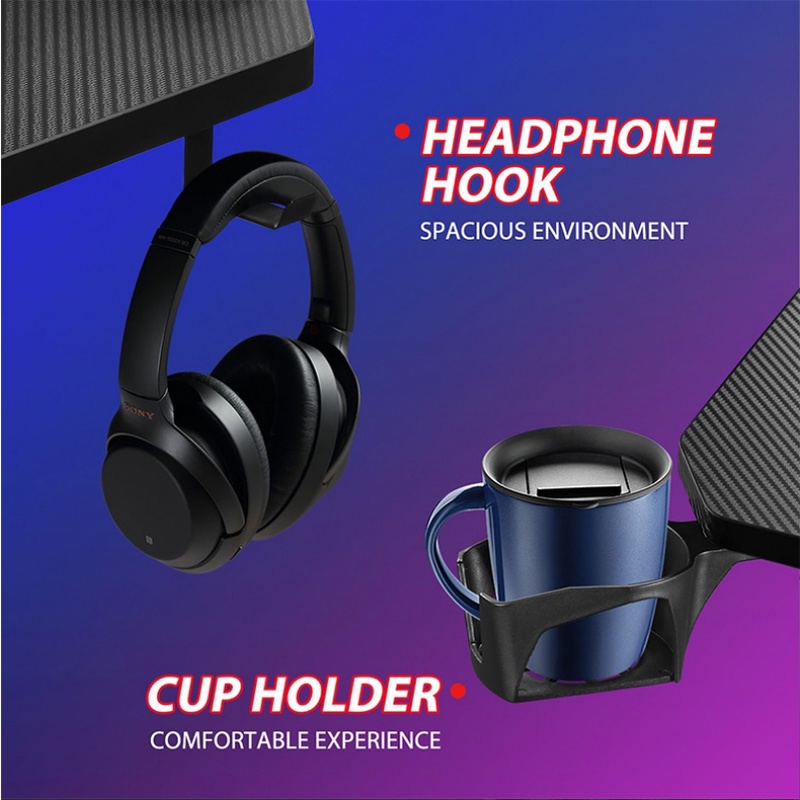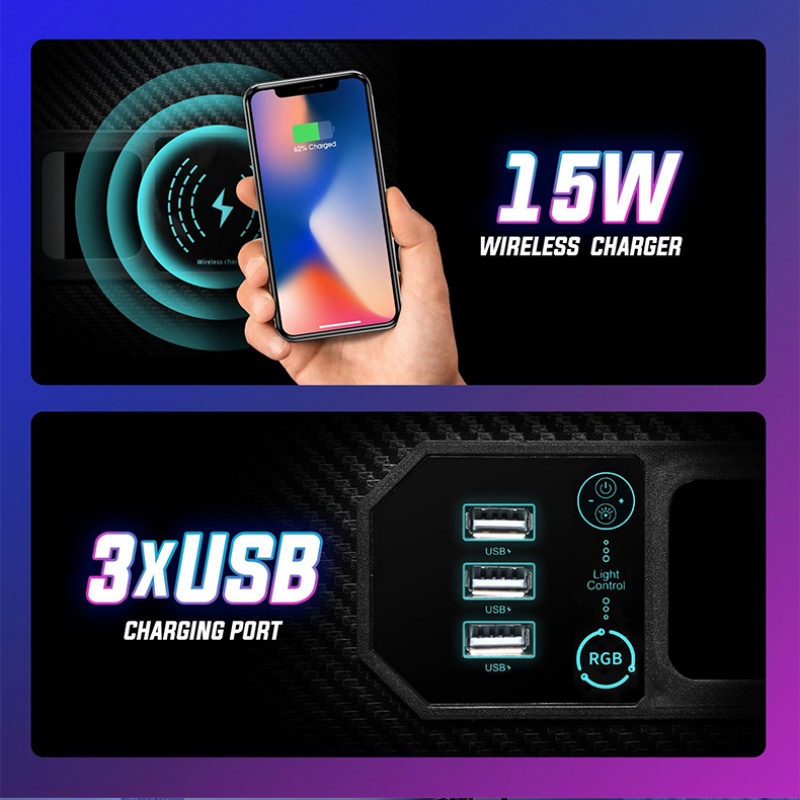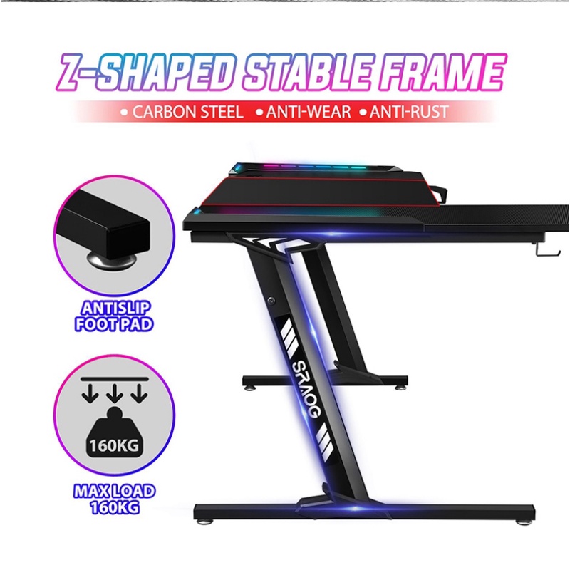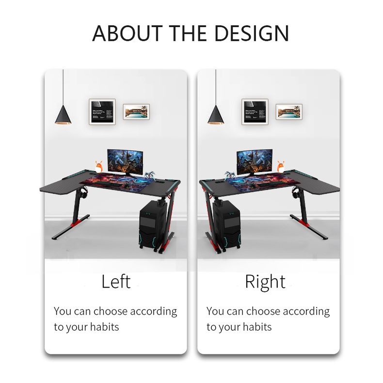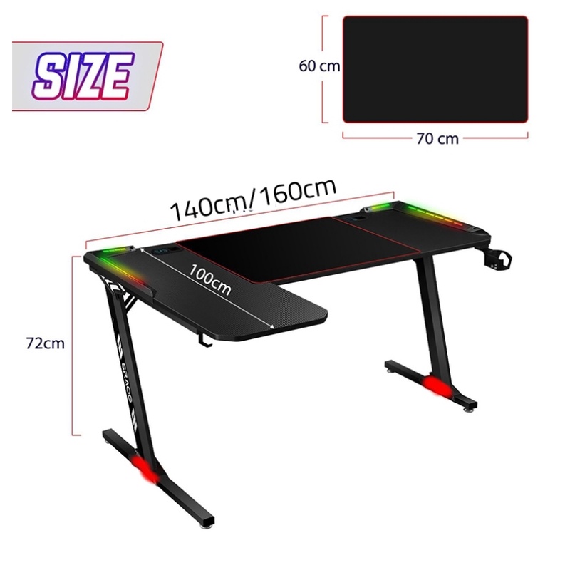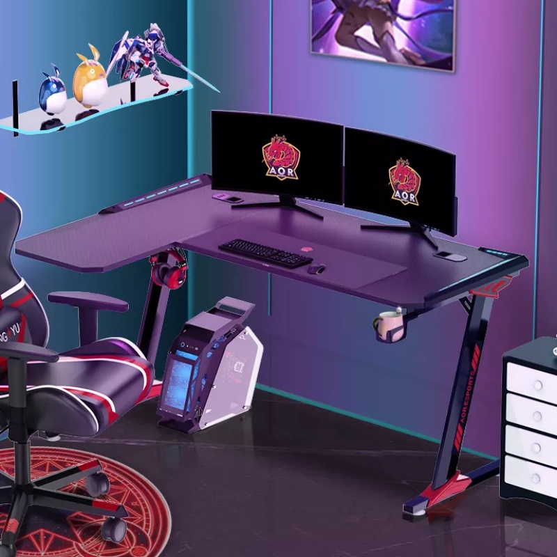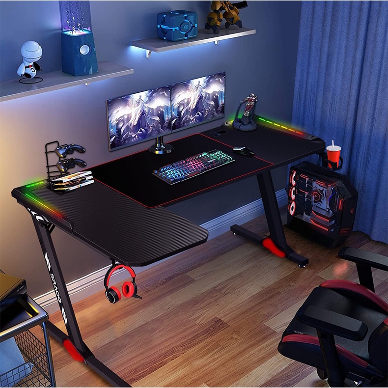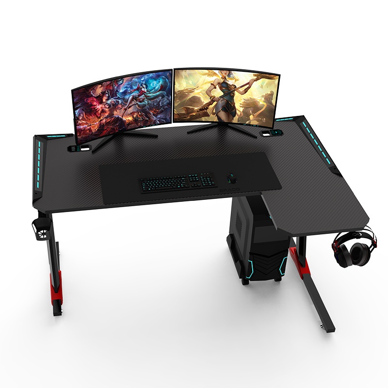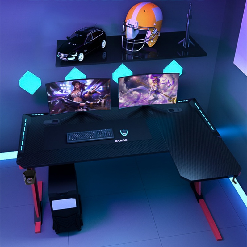 L-SHAPE Esports Gaming Desk Computer Office Racer Table Desktop RGB LED Carbon Fiber USB Wireless Ch